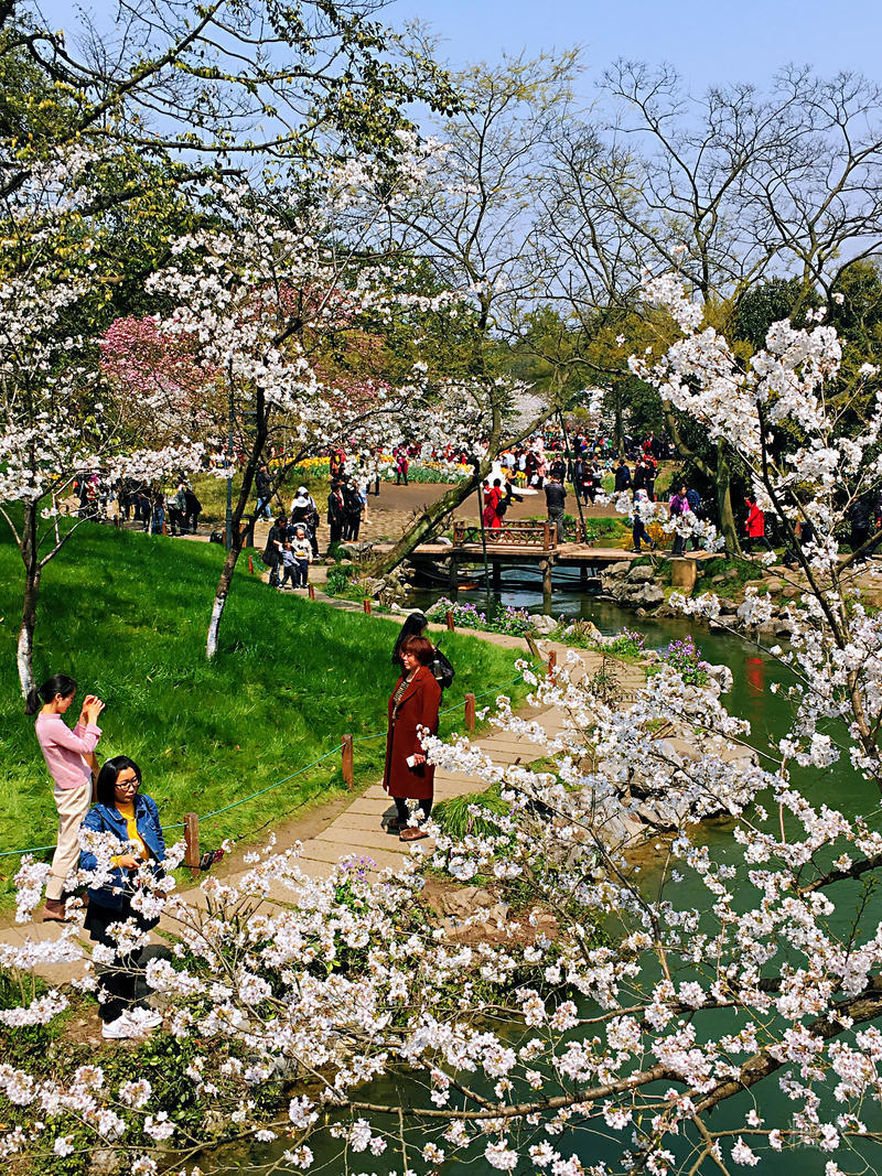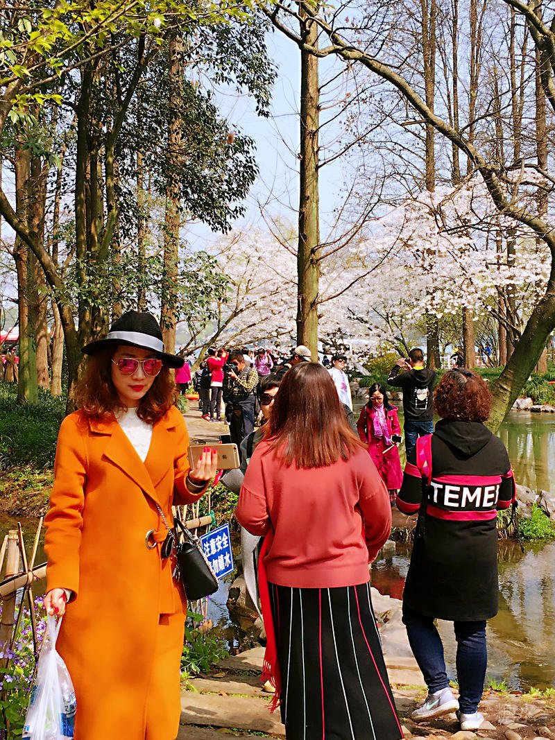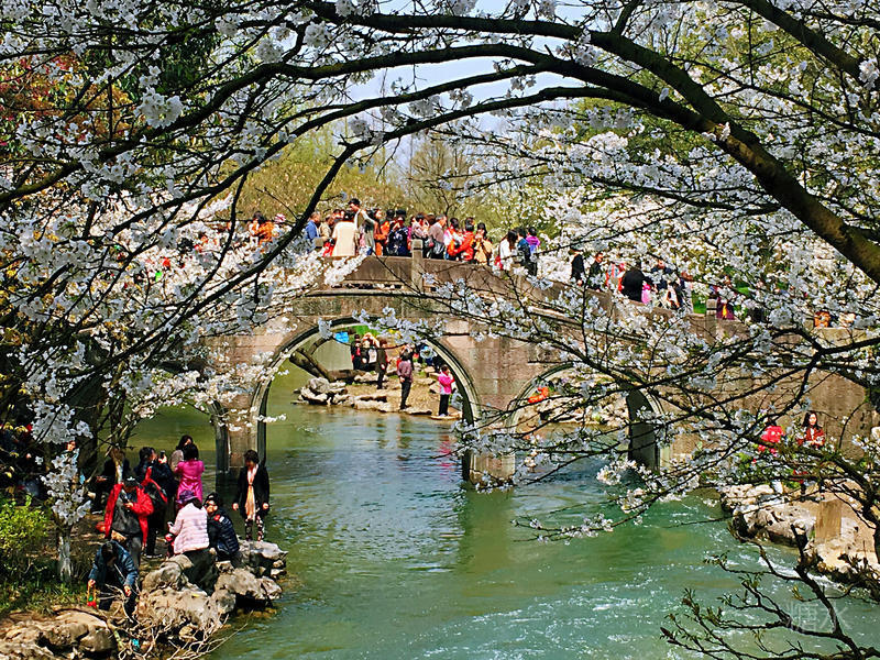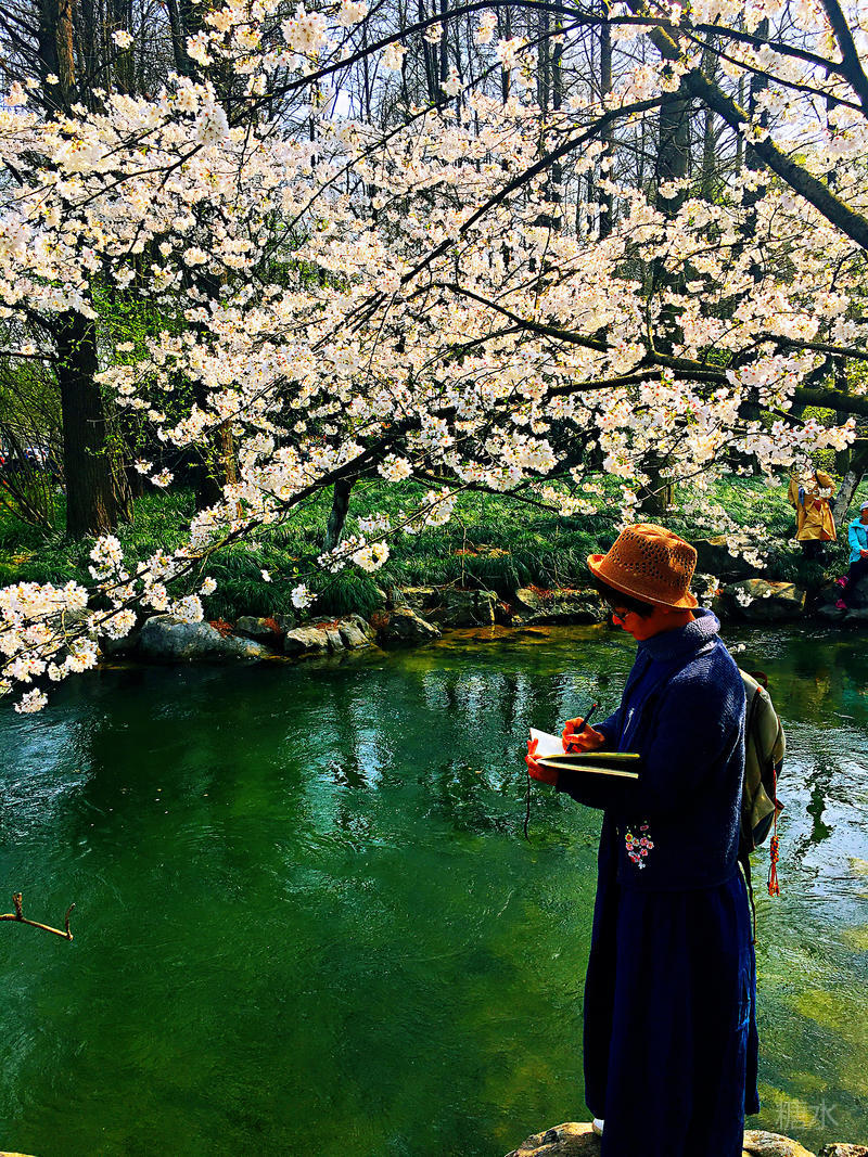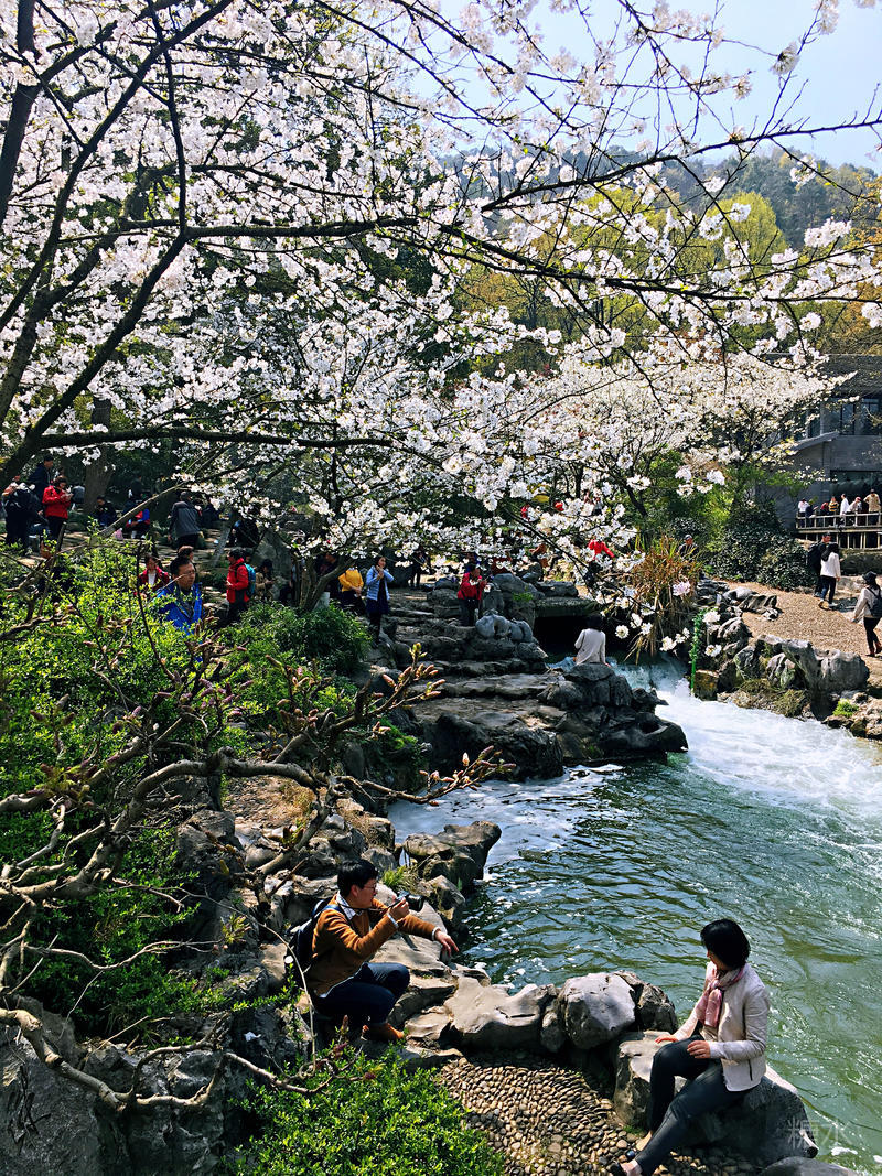 樱花、石桥、流水相映成趣,委婉动人。走累了,坐下讲讲话,发发微信,在别人的照片里,你同样也是一景。漫步在花海中的每一个人,都是流动的风景。拍者醉,游者同样也是醉......