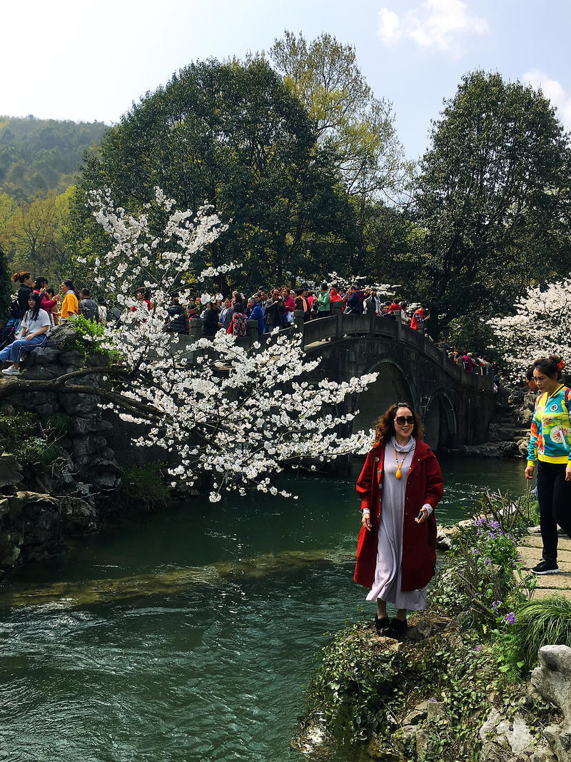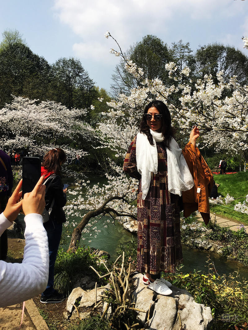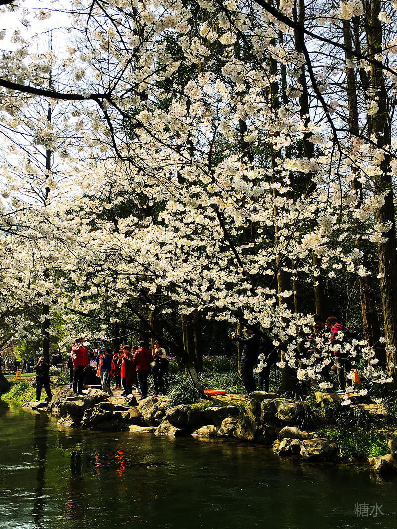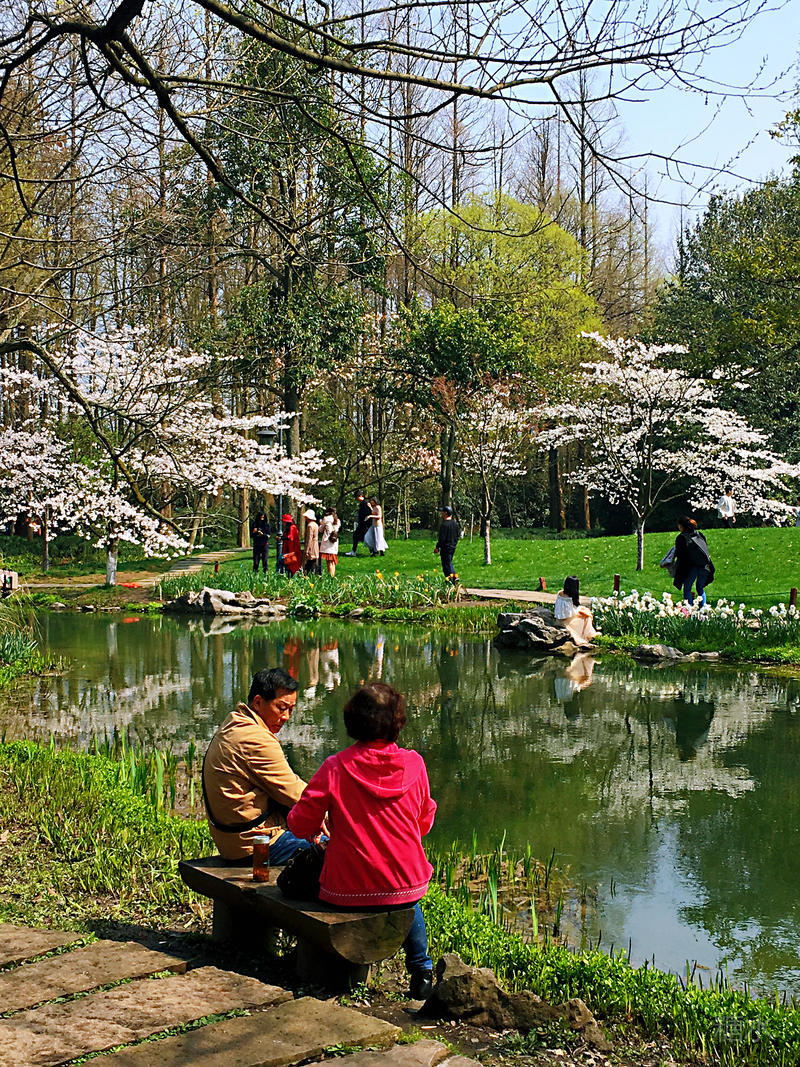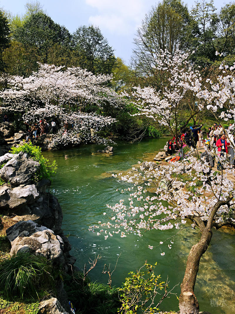樱花、石桥、流水相映成趣,委婉动人。走累了,坐下讲讲话,发发微信,在别人的照片里,你同样也是一景。漫步在花海中的每一个人,都是流动的风景。拍者醉,游者同样也是醉......