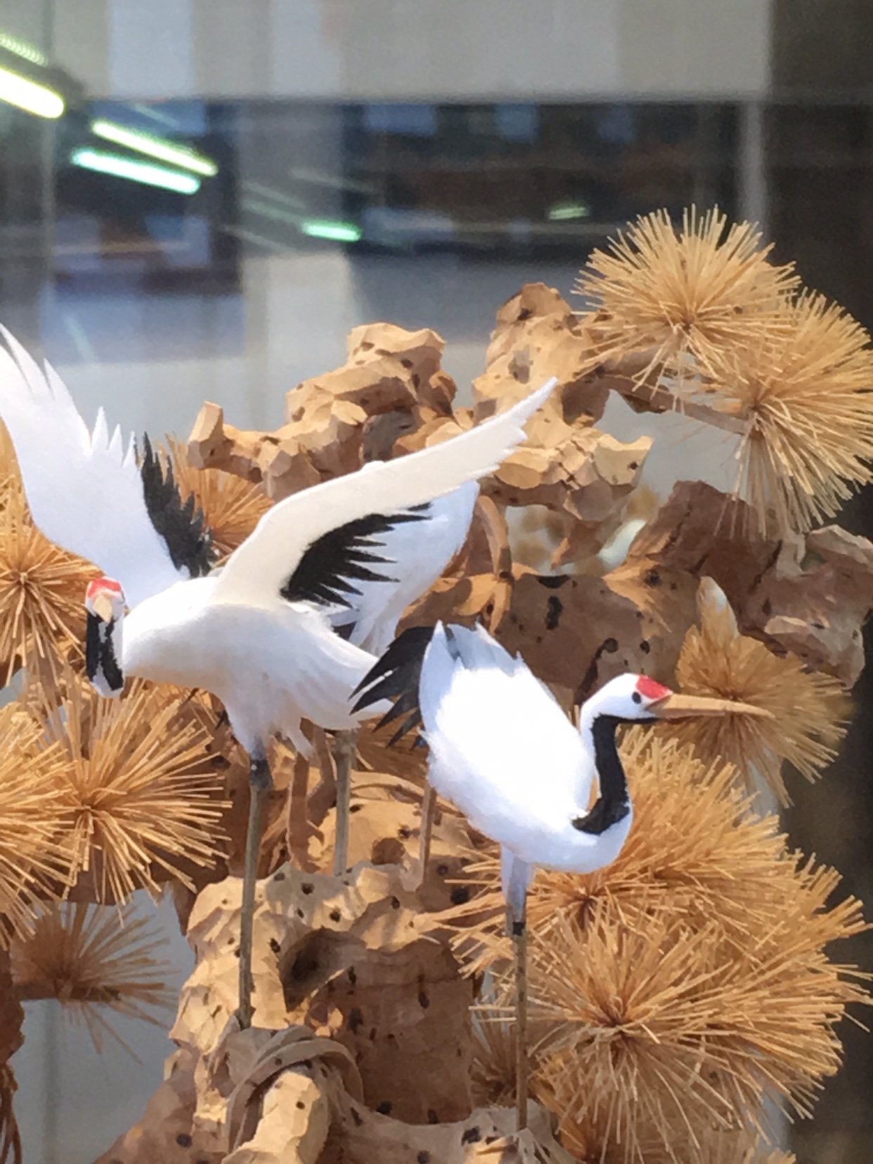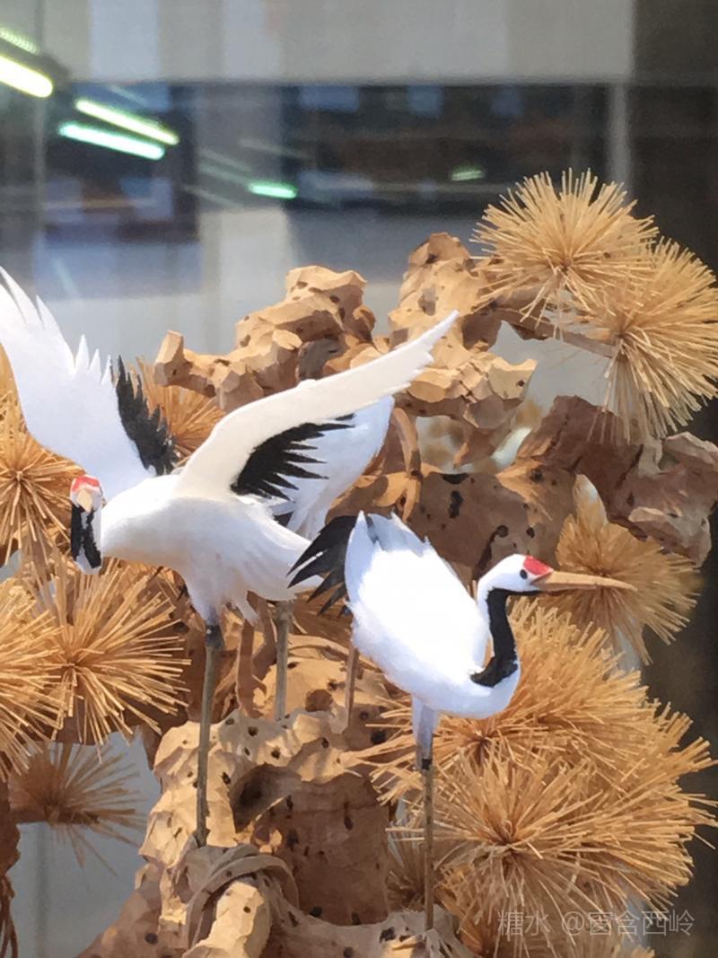 软木画雕刻成花草树木 、亭台楼阁、 小桥流水、桥廊船舫和人物后,用通草做成白鹤、孔雀、麋鹿等飞禽鸟兽,根据画面设计,粘贴衬纸上,配制成立体或半立体的木画,装在玻璃框里,就成了独具一格的艺术品
