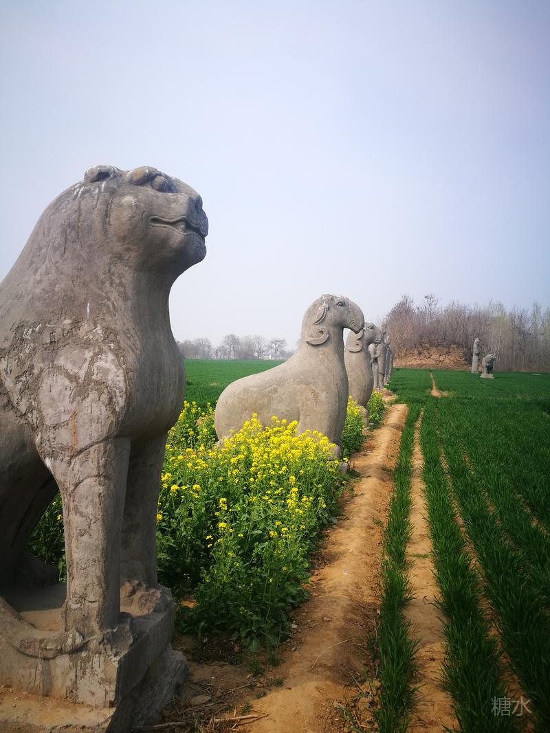 如果不是亲眼所见,难以相信堂堂的北宋皇家陵墓会散落在乡间田野之中,四月初是春风浩荡的季节,柳树迎风摇曳着纤细嫩绿的枝条,桃树按捺不住地绽放出满枝浅粉色的花朵,但是这些美景丝毫掩盖不了宋陵的荒凉。