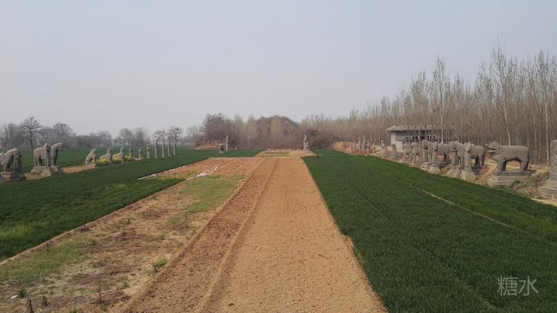 由于时间关系以及每个陵墓的规模和建制相似,所以只看了永裕陵和永昭陵。永裕陵位于芝田乡八陵村,周边被工厂和麦田包围着,放眼望去,在一望无际的田野中只剩下孤寂的石像千年如一日的守护着帝王的寝陵,尽管只是一个荒凉的坟丘,它们表现的仍是那么忠诚。地面的建筑已荡然无存,据说是元朝建立后,蒙古人怕宋代的遗民怀念先朝皇帝,就把宋陵的地上建筑全部烧毁。