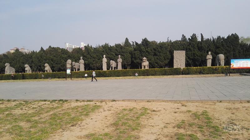 永昭陵因为是在巩义市区,所以被选为第一个勘查的帝陵,永昭陵是宋仁宗赵祯的寝陵,宋仁宗就是民俗演义《狸猫换太子》的那个太子。现在永昭陵的地面建筑是根据考古发掘,按原样进行恢复的,这也是宋陵“七帝八陵”中唯一一个复原的。复原了的永昭陵地面建筑除了石刻以外,还有两座鹊台、两座乳台 、宫城、陵台和地宫,鹊台是第一道门,东西两侧是华丽的楼阁,鹊台的鹊,据说有喜鹊登枝的含义。第二道门乳台整体为三出阙状,象征着皇家等级。走过第二道门,便是神道,走在长长的神道上,细心的人会发现整个皇陵是南高北低,具有最崇高地位的陵台处在陵区的最低处,在这里瞻仰皇陵,丝毫没有皇帝高高在上的感觉,皇帝几乎躺在人们的脚下,这和历代皇帝的埋葬方式完全不同。宋陵为何会有如此奇怪的选择?好奇心驱使我查阅了相关资料,原来在唐宋时期,流行“五音姓利”的风水理论,就是人们姓氏的读音对应着工、商、角、徵、羽五音,宋代皇帝的赵姓属于角音,角音不仅要求在都城的西方选阴宅,而且陵地也要求“东南地穹,西北地垂”,所以宋代的皇陵都南高北低,形成了倒仰的形式。并且巩义面对嵩山,背依黄河,也符合角音“山之北、水之南”的风水要求。