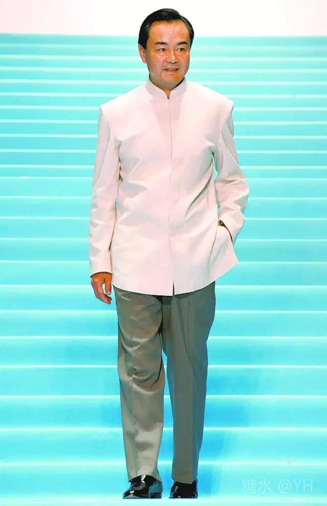 12年前,王毅担任驻日本国特命全权大使, 在日本环境大臣小池百合子安排的『凉爽 亚洲2006』时装秀中,他身穿白色中山装登 场走秀,俘获了一群日本女粉丝。这气场,