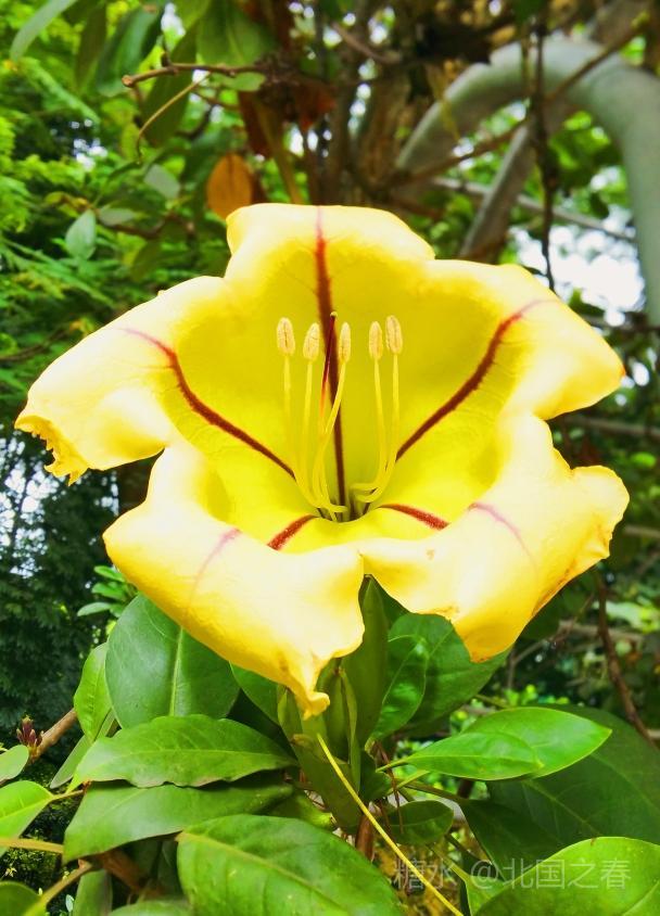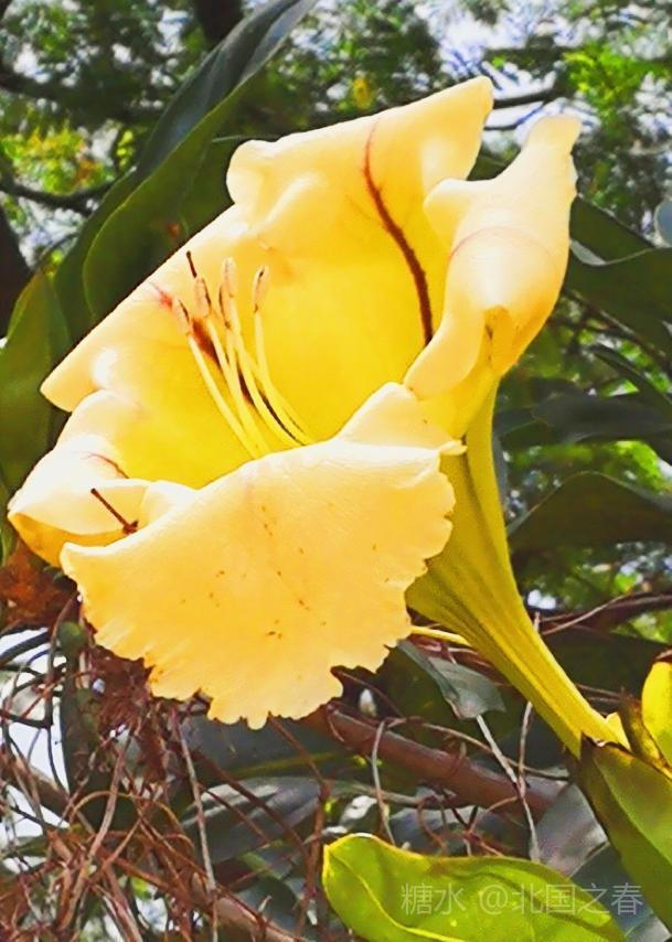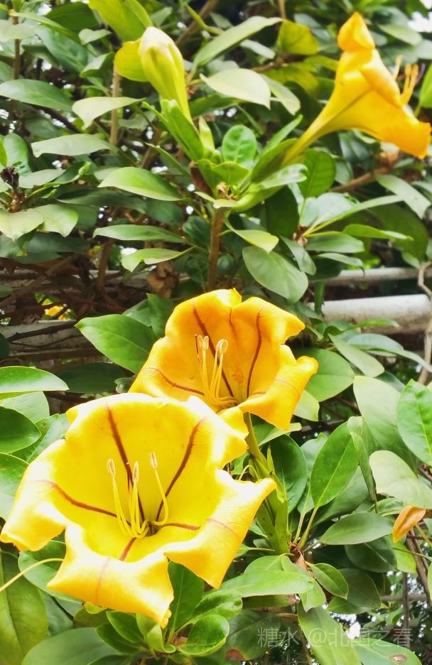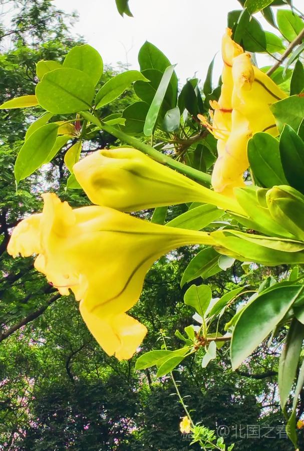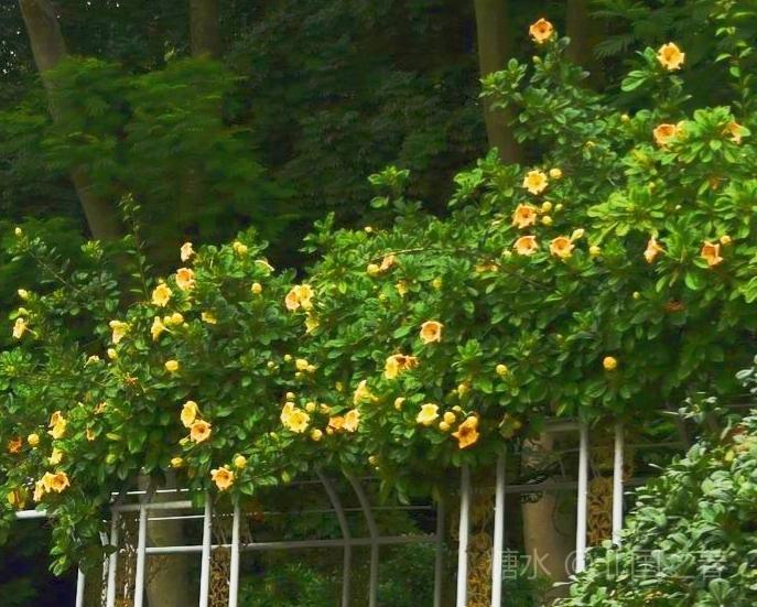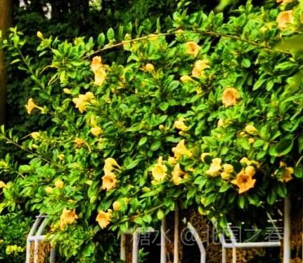 金杯花原产自中美洲,是优良的园林荫棚植物。由于此花盛花时,既像喇叭又像一个个金色的奖杯,故称金杯花。