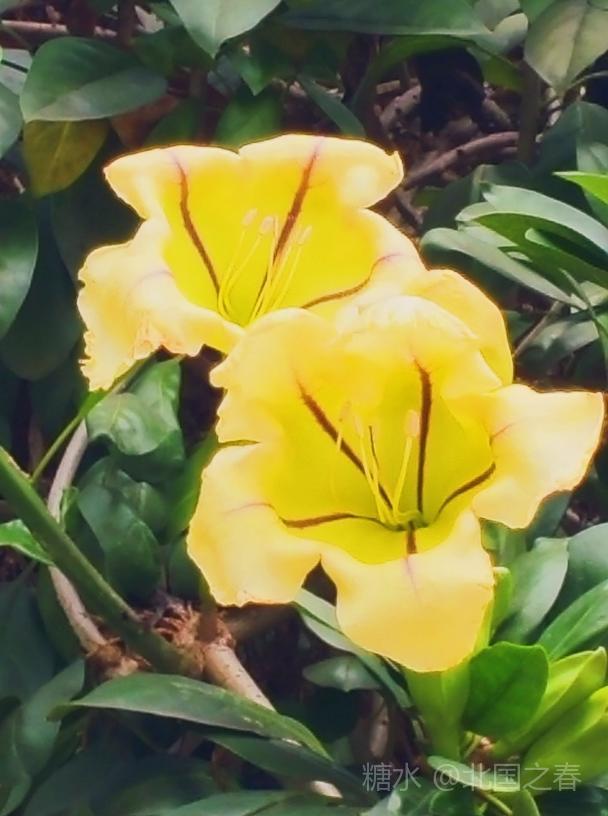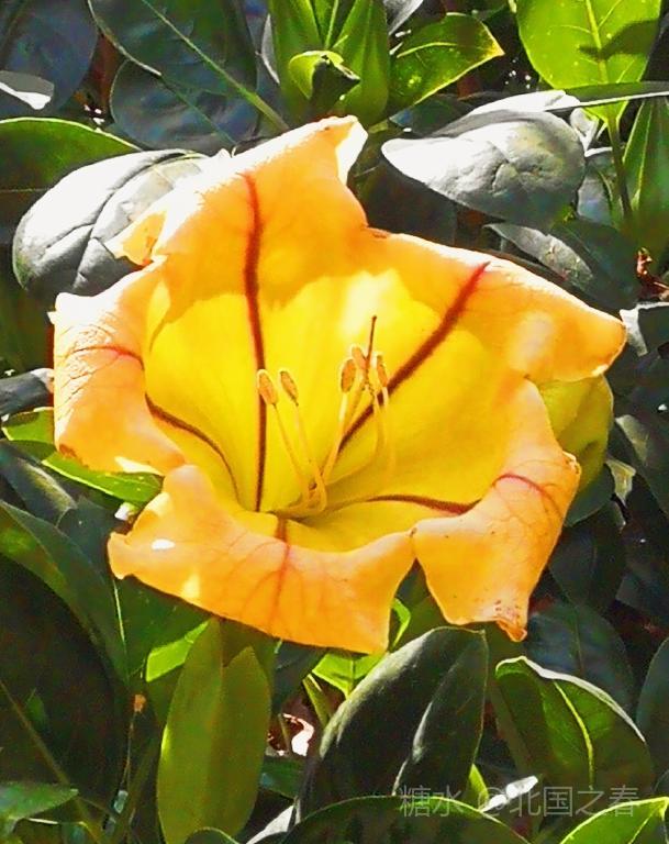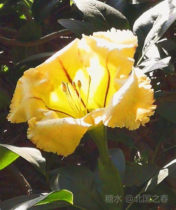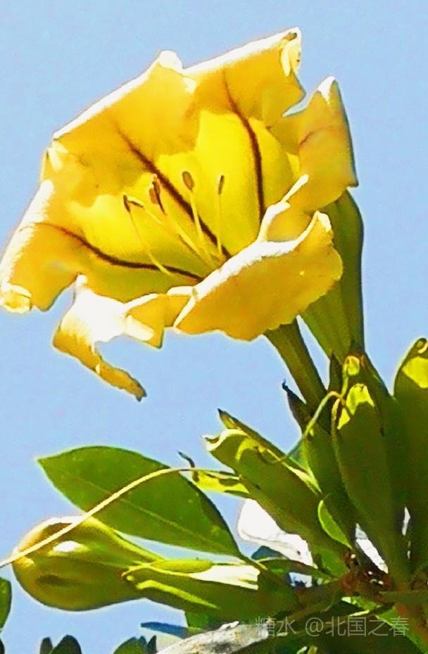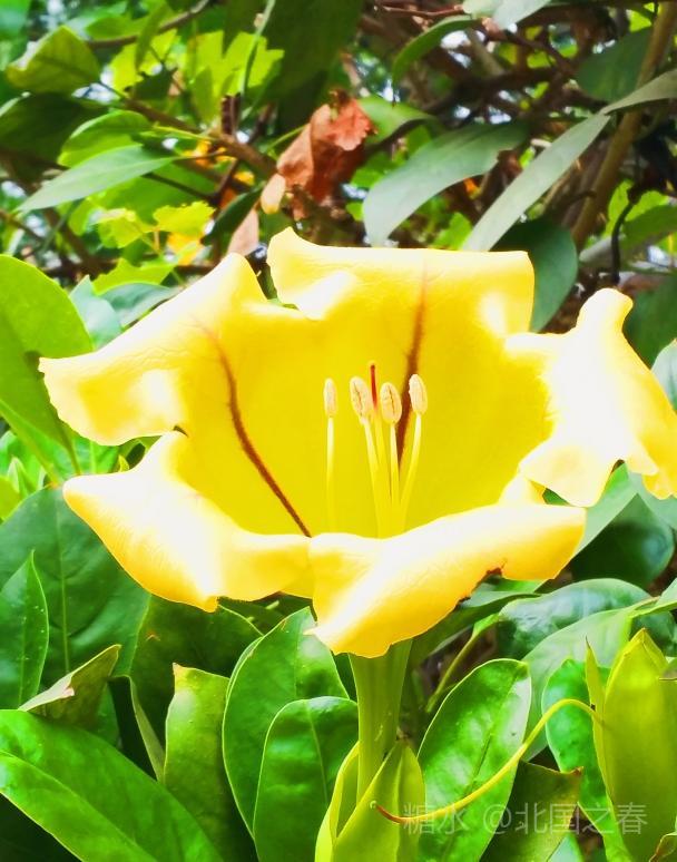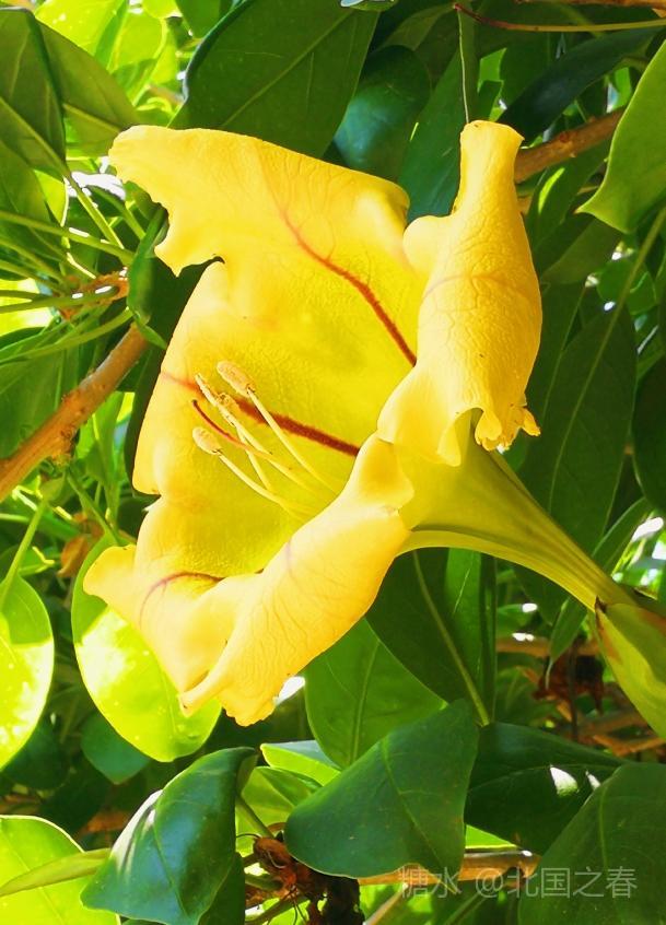 玉明同学赠诗雅评 美丽金杯藤 常绿灌木金杯藤 叶片互生椭圆形 单花顶生金杯状 荫棚植物属上乘 全株有毒莫轻碰 黄花艳丽情永恒 谢谢志勇来分享 同学为你情更浓