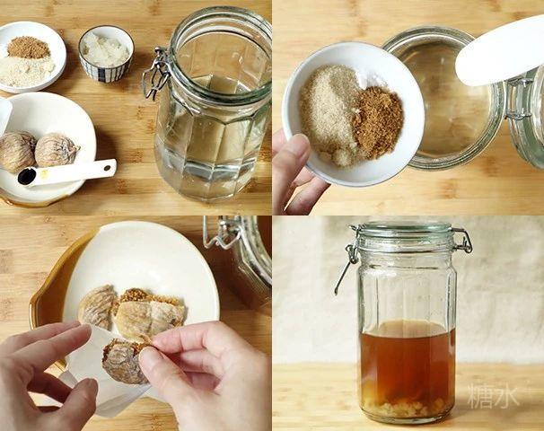① 将1公升室温的水倒入玻璃瓶,加入5汤匙有机糖,搅拌融化。