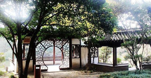 月洞门上题“廉园”二字“,此乃"怡安堂“小院,是汇龙潭北部的江南庭院景区了。