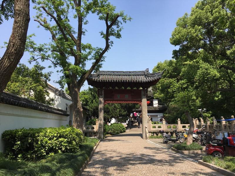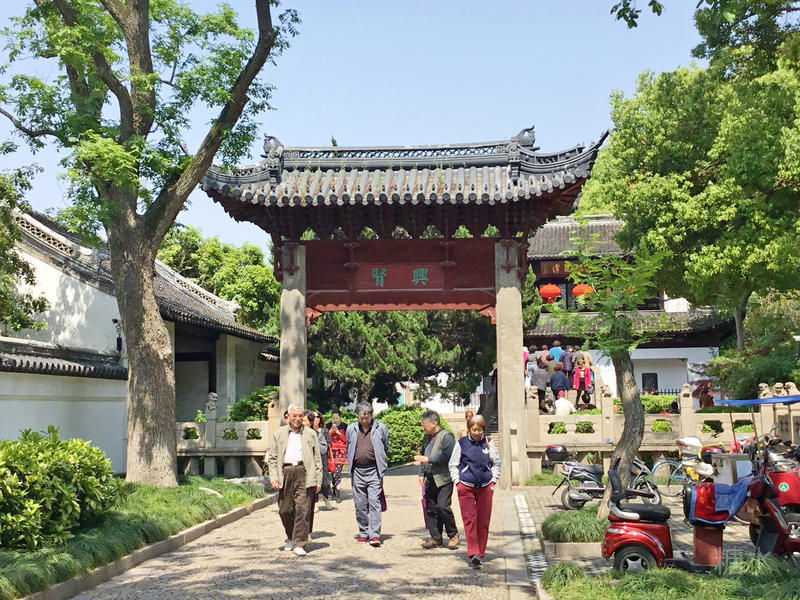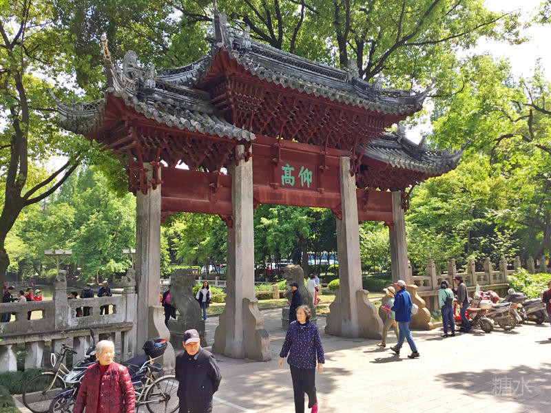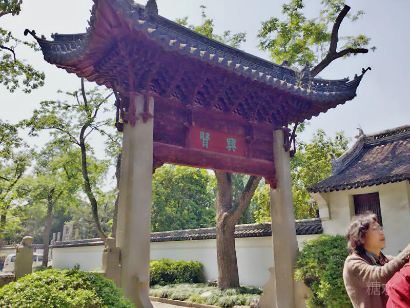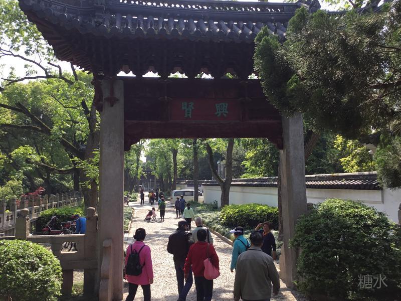 走没几步便是"兴贤"牌坊,汇龙潭公园的正门就在石拱桥那边。