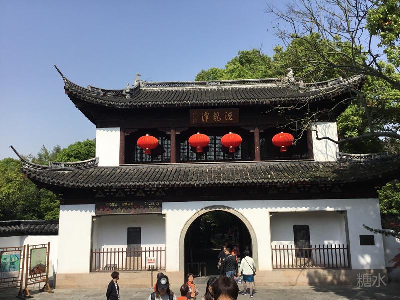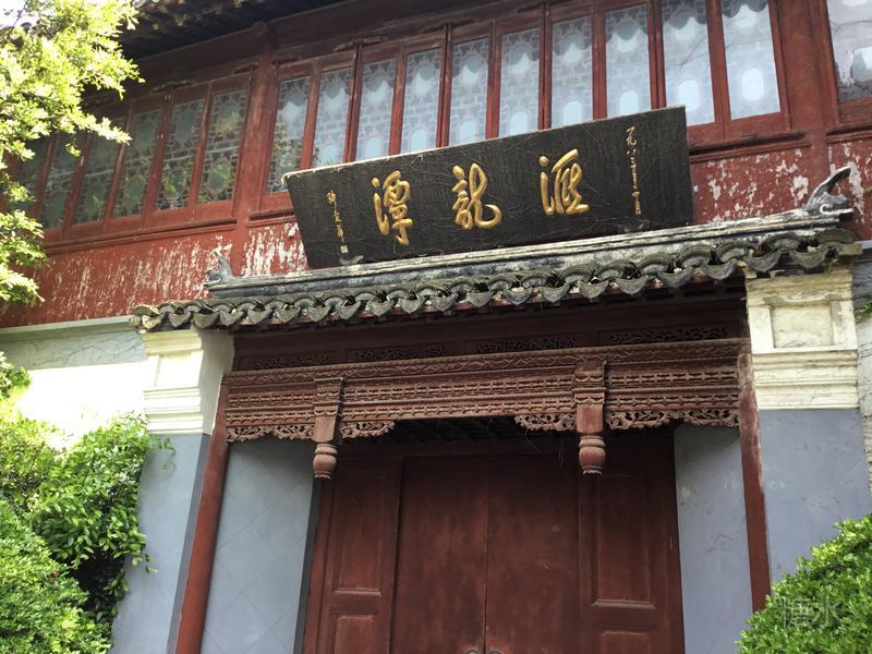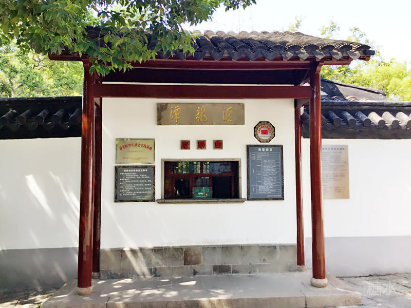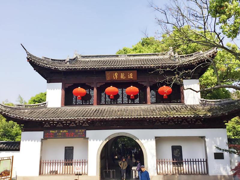 跨过"宜兴桥",便是汇龙潭的正门,门为城关状,"汇龙潭"的牌匾高悬在上。