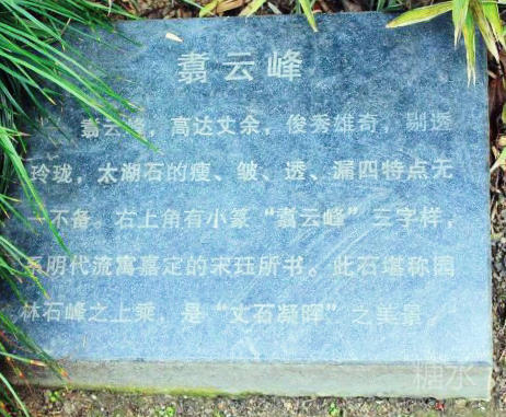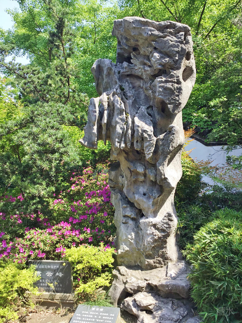 翥云峰在怡安堂前,高达丈余,俊秀雄奇,剔透玲珑,太湖石的瘦、皱、透、漏四特点无一不备。右上角有小篆“翥云峰”三字样,系明代流寓嘉定的宋珏所书。此石堪称园林假石之上乘,是“丈石凝晖”之美景。