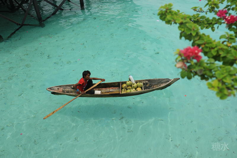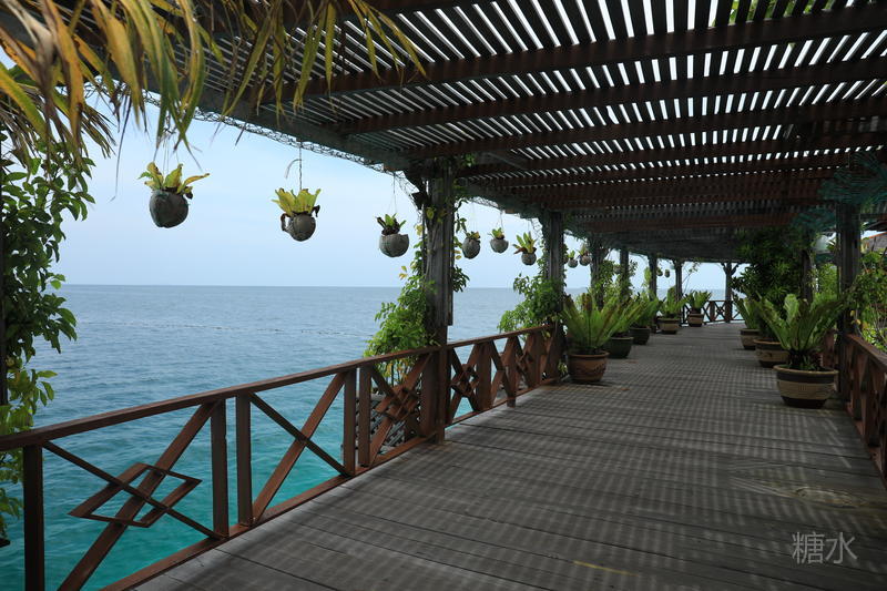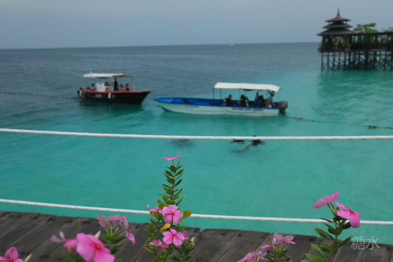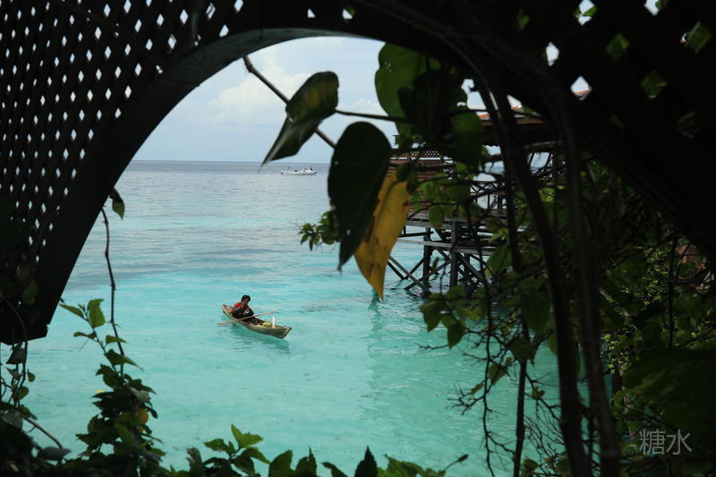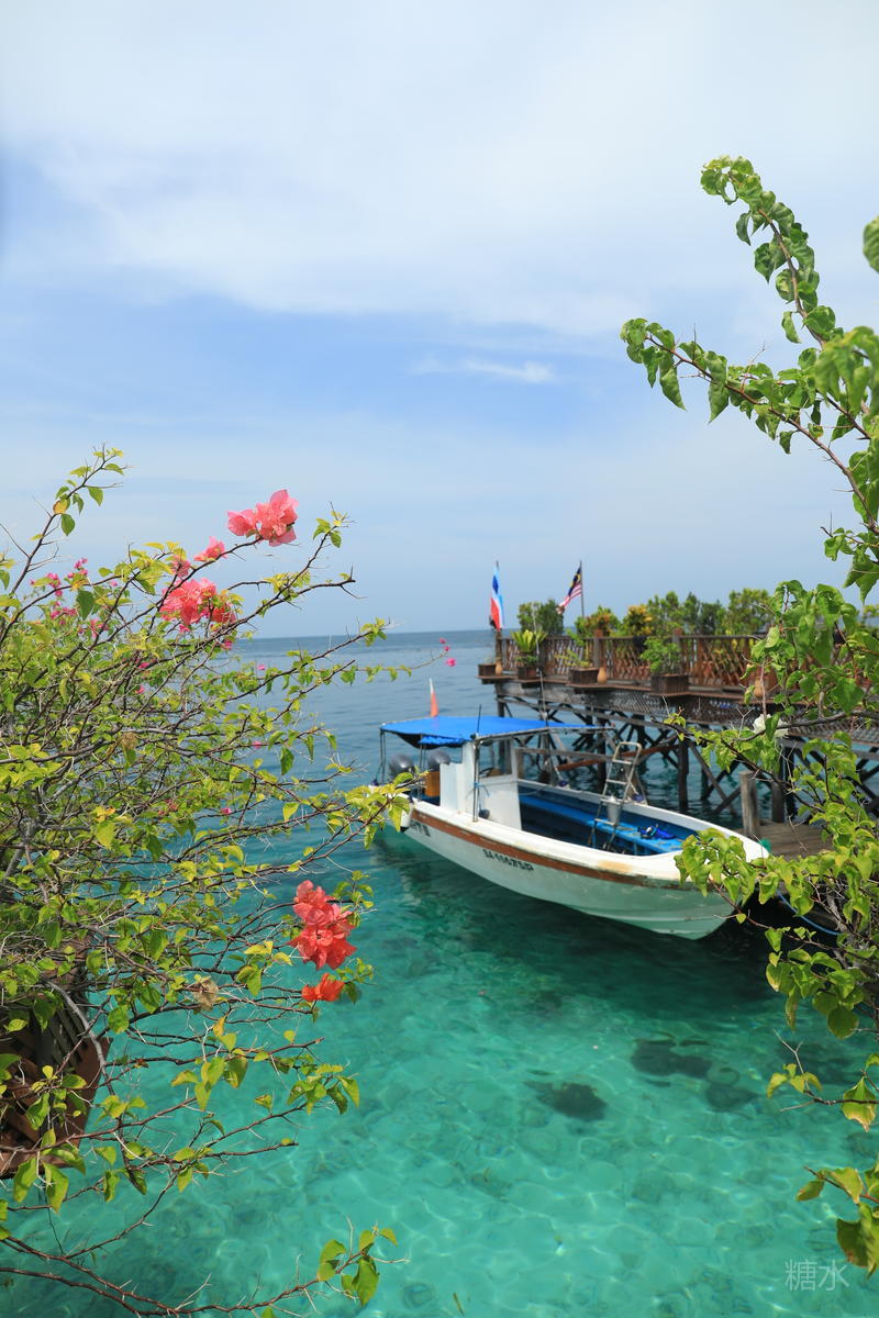 在仙本那印象最深的岛就是军舰岛,非常小的一个海岛,小巧而又精致,外形像一艘军舰,所以叫军舰岛,岛的三分之一被沙滩环绕着,高大的椰子树直插入阳光灿烂的蓝天里,洁白的长尾沙滩缓缓伸入碧蓝的海水中,水面非常平静,海边很安静,浅水区有大面积的珊瑚,各种各样的海洋鱼类,非常适合浮潜!军舰岛的海水是我迄今为止见过最干净的海水