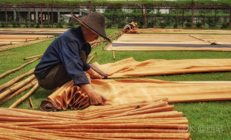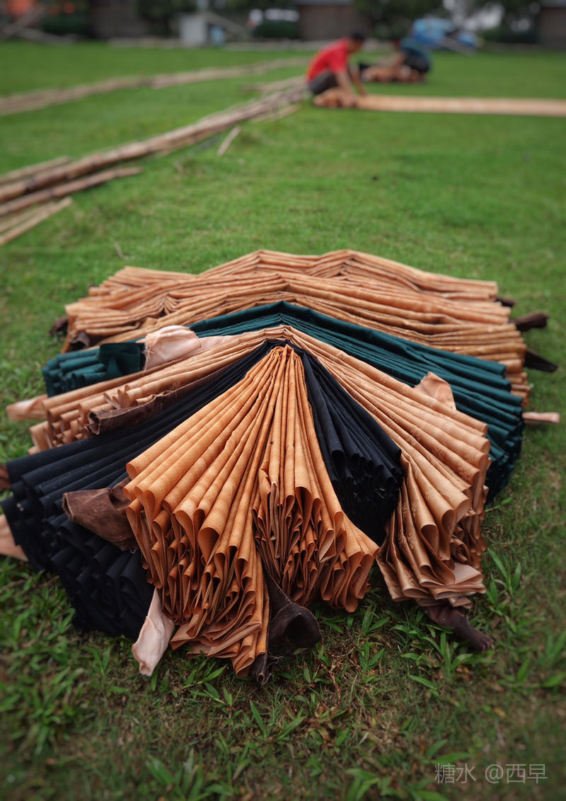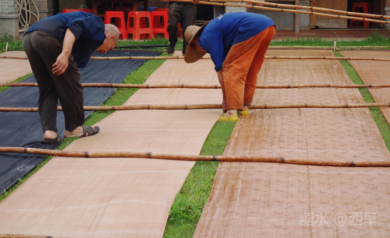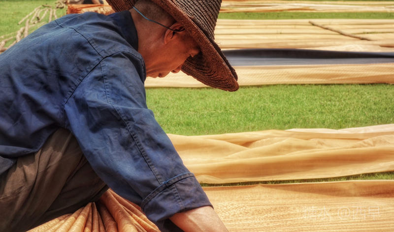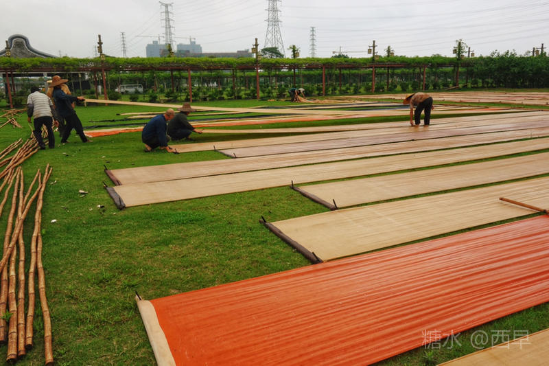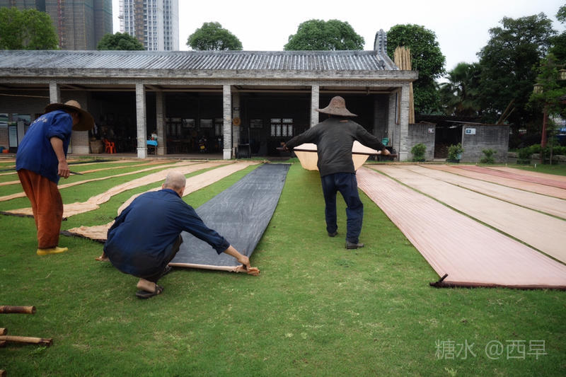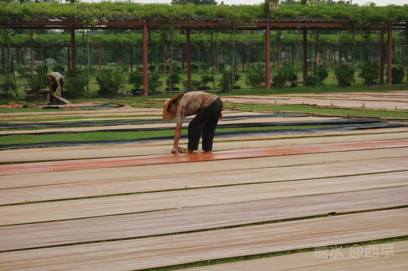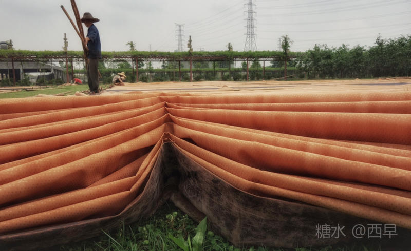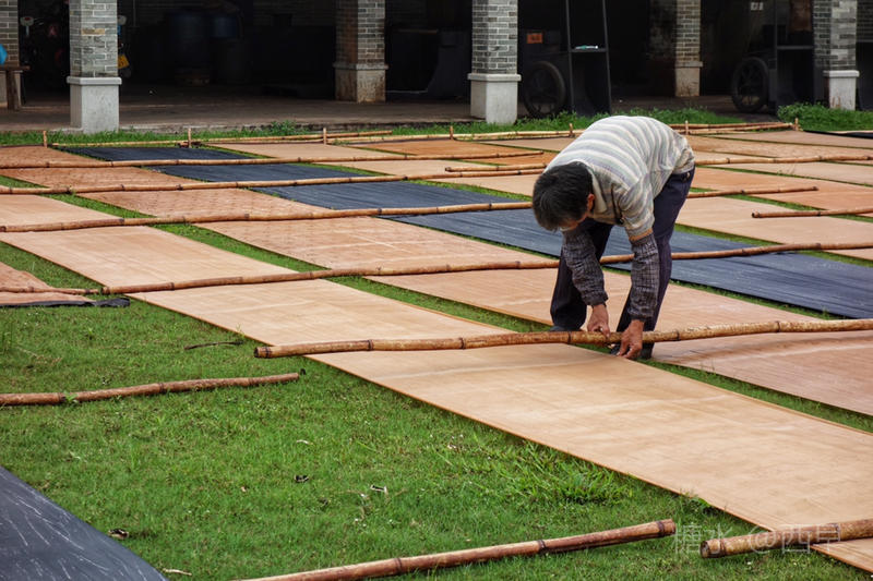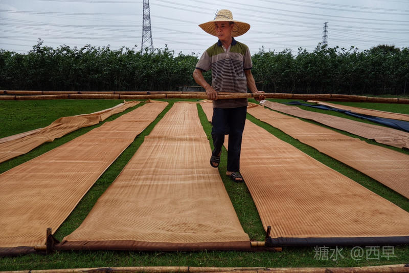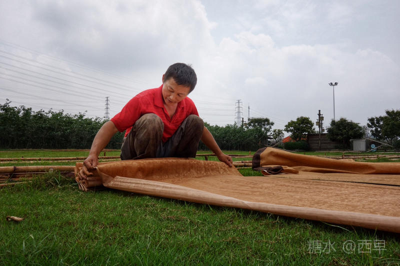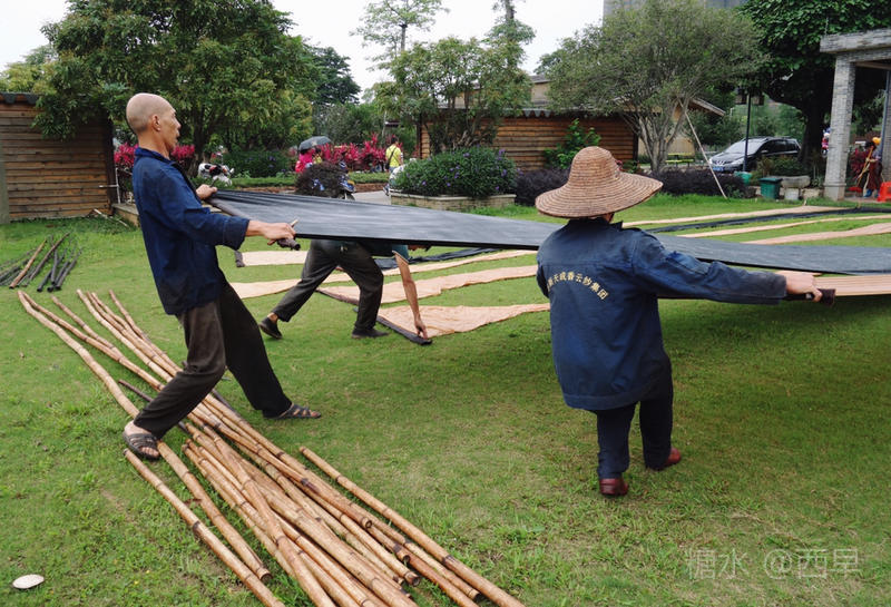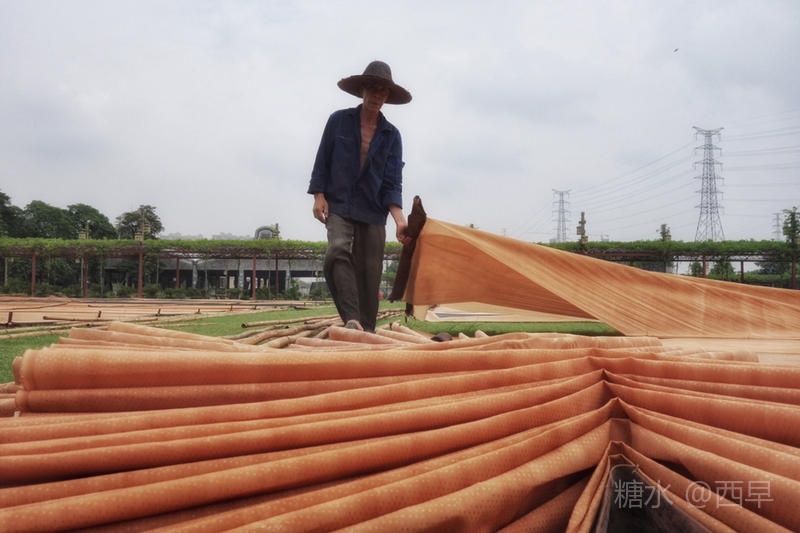 晒莨十分繁复,全部用手工操作完成,是一项繁重的体力劳动.