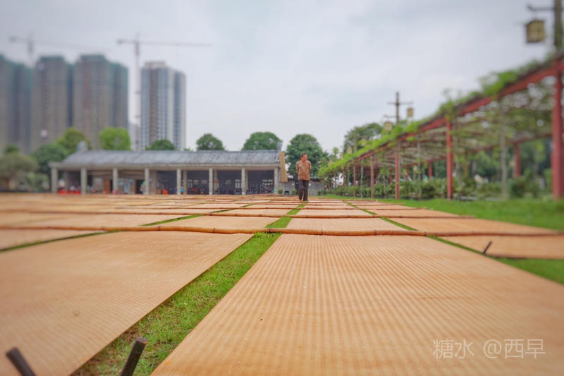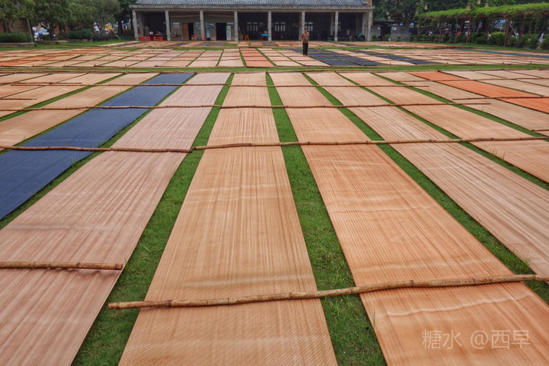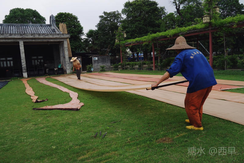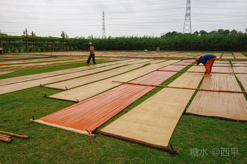 顺德伦教是这个产品染整技艺的传承地,有数百年历史传统的染整技艺。 今天,我们来到顺德伦教香云纱博物馆的晒染草场,参观、了解莨纱的染整过程。
