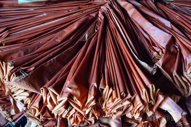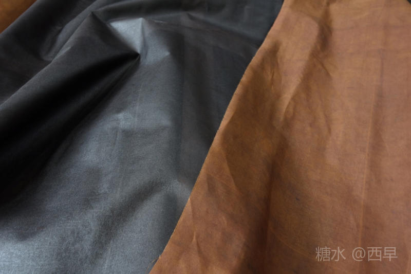 香云纱成品。一面油亮的深色,一面古朴的浅色。每一匹香云纱都来之不易。 2009年香云纱文化遗产保护基地"广东香云纱文化产业园区"在佛山市顺德区伦教街道正式挂牌。2013年《地理标志产品香云纱》由广东省质量技术监督局正式批准发布。