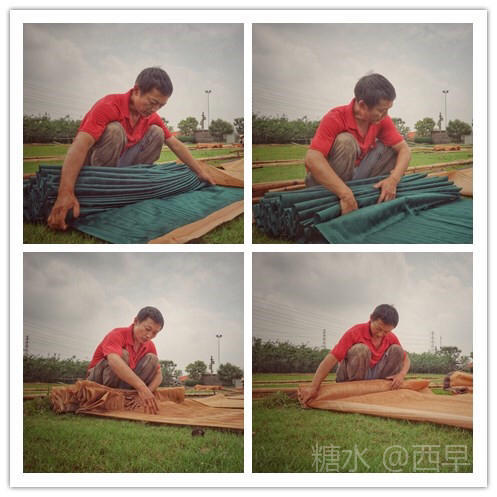 师傅说:今天天气不好,现在收好就可以下班了,等明天天气好了再做。