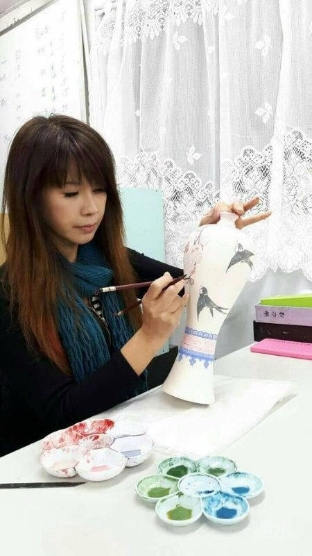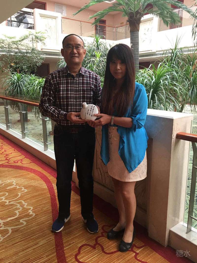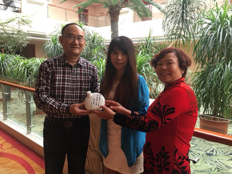 冯文俊主席生前所创建的欧文瓷国际有限公司暨台湾艺术之美,应邀派冯主席生前所提携的台灣藝術大學文創學程助教、该公司设计师、新聘任的中外酒协荣誉主席黄玉秀女士和她的顾问林映彤女士,全过程参加。图为黄玉秀女士设计的精美酒器。