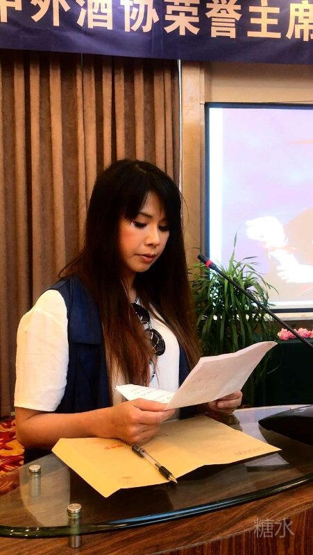 新任中外酒协台湾籍荣誉主席、欧文瓷国际公司暨台湾艺术之美黄玉秀女士发言。