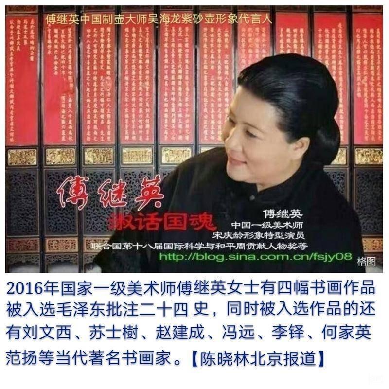 傅继英(英文名:ELECTRA),中国傅体书法创始人、世界影像书法第一人。宋庆龄形象特型演员。国家一级美术师、中国青年书法家协会副主席 、中央书画研究院常务副院长、国际美术家协会常务理事、中国诗歌学会会员、《傅继英艺术世界》艺术馆荣誉馆长。 Fu Jiying (English Name: ELECTRA), the founder of Chinese Fu calligraphy, the first person in the world image calligraphy. The image of Song Qingling actor. A national level artist, China youth Calligraphers Association vice chairman of the Central Committee, painting and Calligraphy Institute executive vice president, International Artists Association, executive director of the China poetry society, "Fu Jiying art world" art museum curator emeritus.