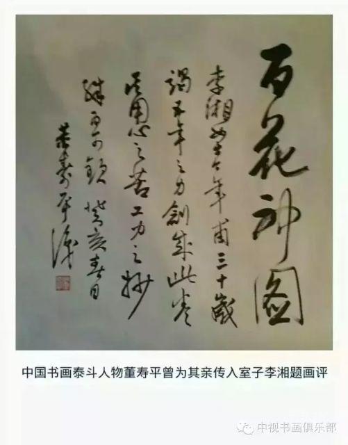 李湘女士与周汝昌先生在一起。周先生是中国红学派大师、古典文学家。这段资料来源于人民日报。 李湘最有代表性的艺术收藏品之一:“红楼梦”的 413 位人物图将在中国海南一个全新概念的文化公园中展示。各大媒体撰写了关于她的文章和书籍。李湘也很荣幸的在国内外开办了个人画展,包括美国,西班牙,新加坡,泰国,日本,和韩国。 李