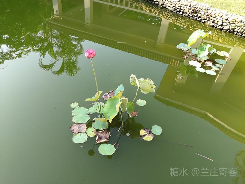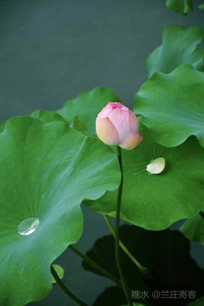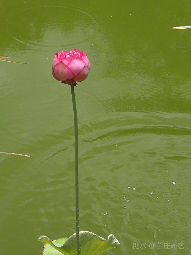 今天恰值立夏,其实俺办公室前荷池的一支春荷在立夏前已成蕾,前天菡萏终于盛开了,特赋诗作记。 五绝-春之恋 兰庄寄客 香风沐泫卿, 玉颊绮霞生。 应是春心动, 涟漪乱一泓。 注: 1、泫卿:仙子的意思,此处借指荷花。清·曹寅 《小游仙》诗之五:“信是仙人金骨冷,须眉一夜化泫卿。” 2、涟漪:形容被风吹起的水面波纹。常用作比喻心里细微的活动。《诗经·魏风·伐檀》:“坎坎伐檀兮,寘之河之干兮,河水清且涟漪。”