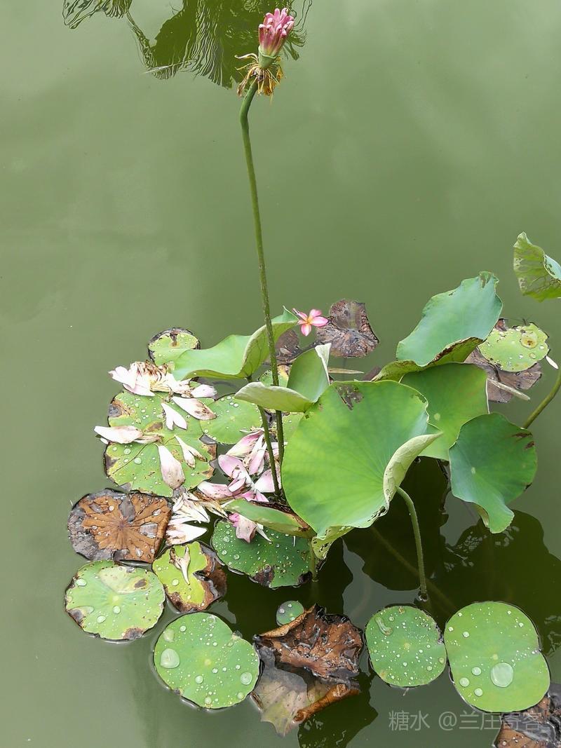 后续:5月6日立夏刚过,一场早来的夏雨把荷瓣打得支离破碎散于叶盖上,此景令人唏嘘。2018年5月8日摄记。