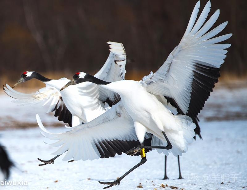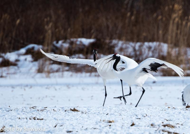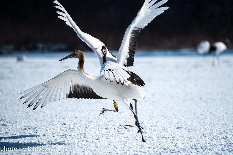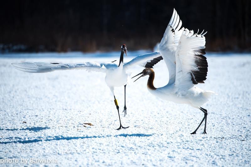 丹顶鹤的双鹤舞是雄雌之间示爱。
