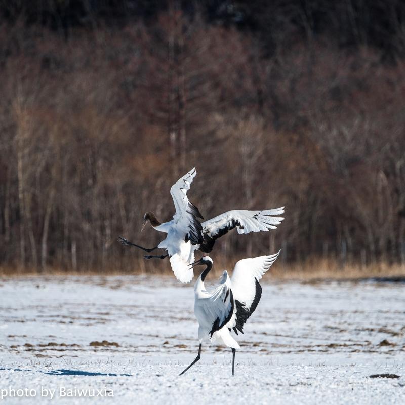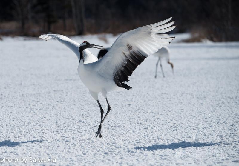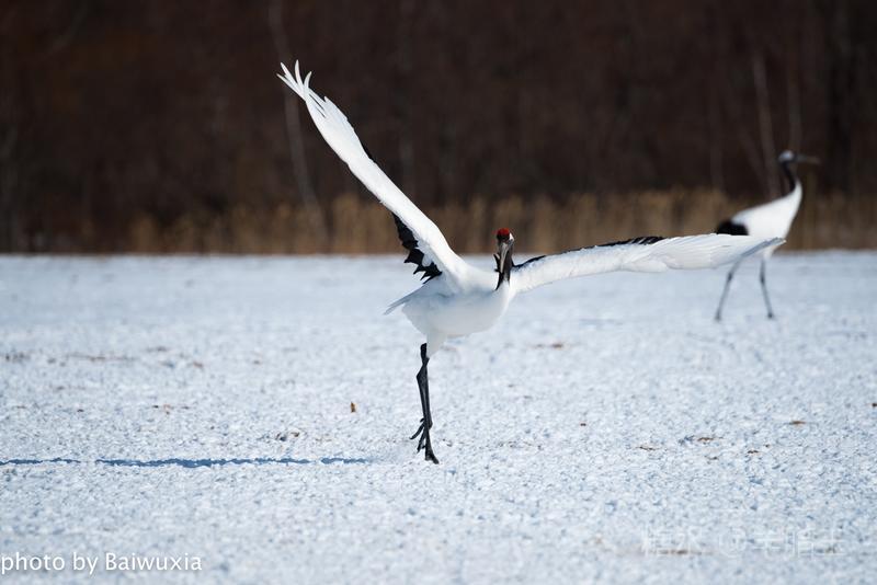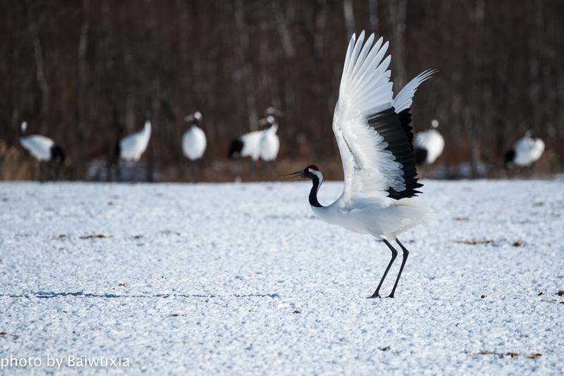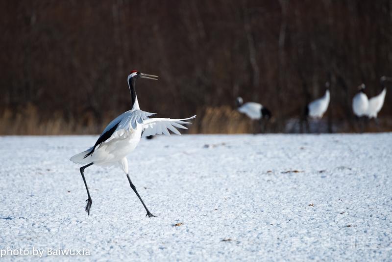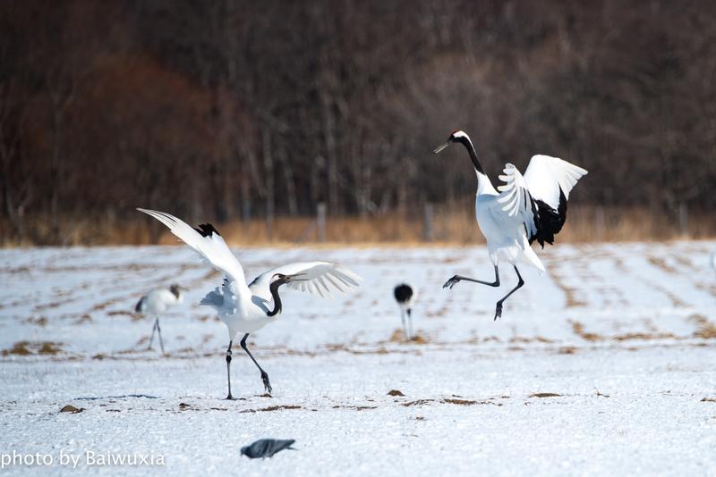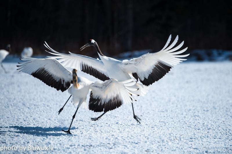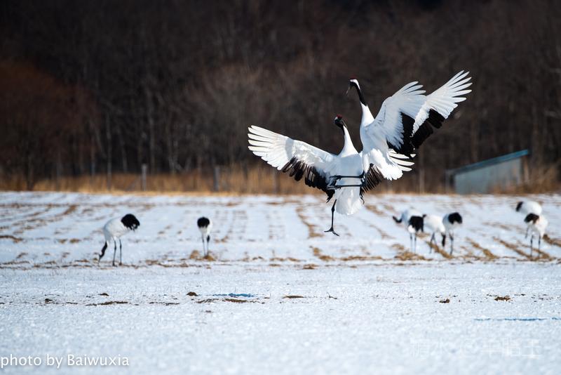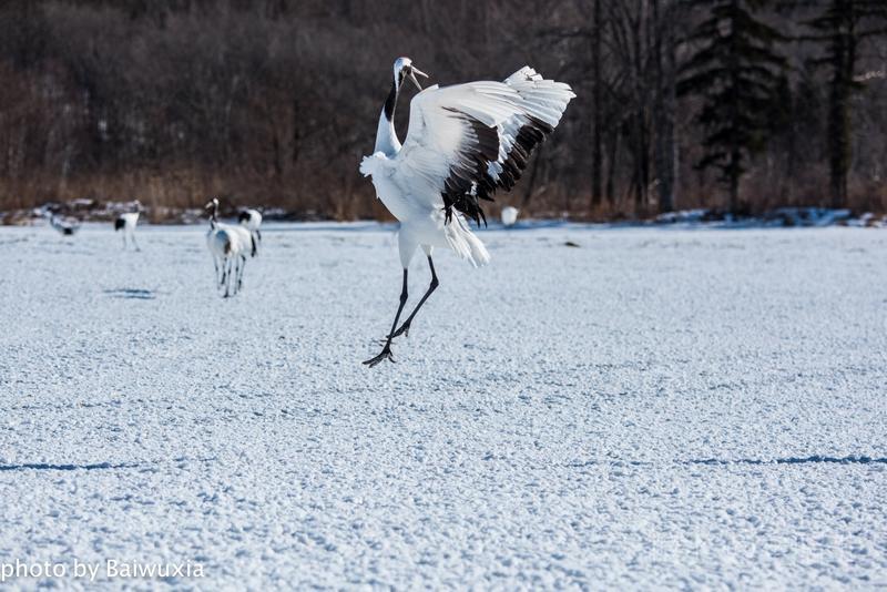 丹顶鹤之所以受人们的喜爱,主要原因就是他的婀娜多姿的舞姿,人类的芭蕾舞是不是起源于鹤的舞姿呢,也许吧,芭蕾舞演员的走路姿态和丹顶鹤非常神似。 我把丹顶鹤的舞姿比喻为芭蕾舞,我喜欢看芭蕾舞剧,所以来北海道拍摄丹顶鹤是我的期待。