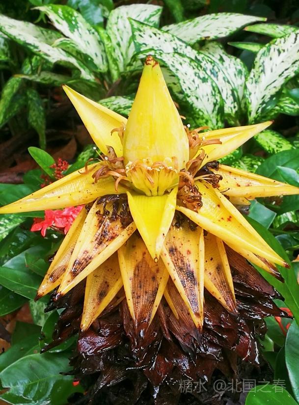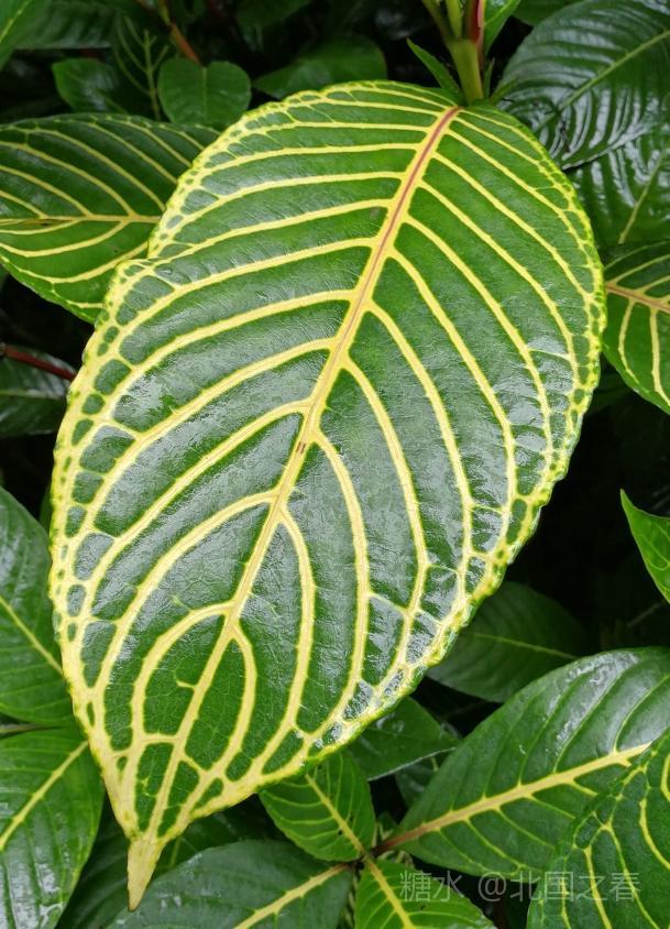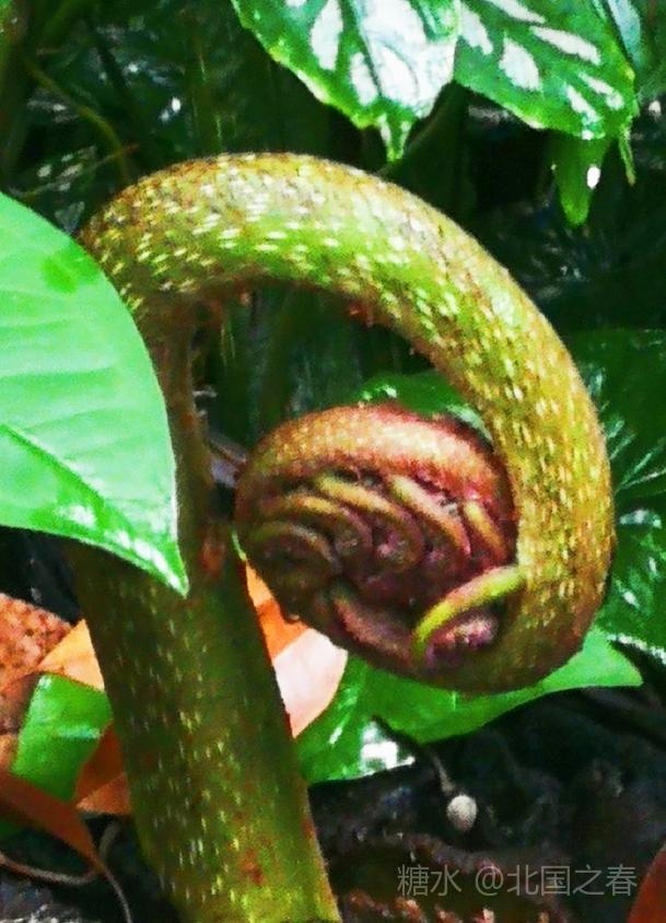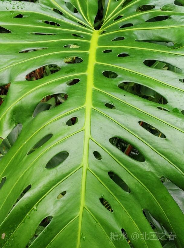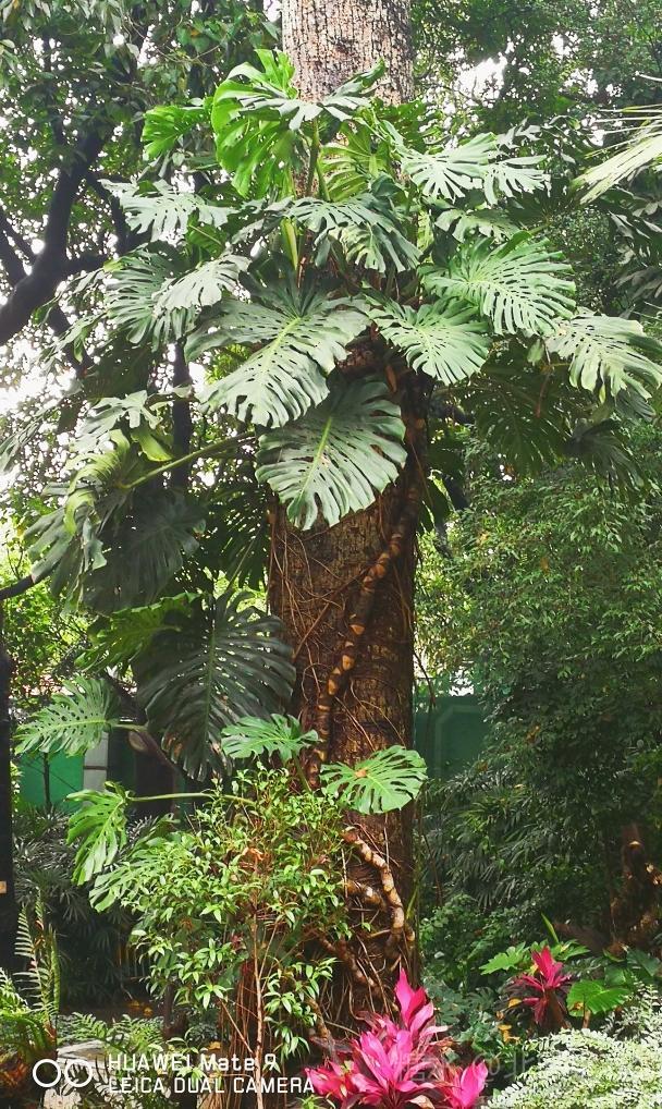 《鹧鸪天 • 龟背竹》 巨叶孔裂纹路大 茎似罗汉善攀爬 叶形犹如龟背状 花苞恰似佛焰塔 根纵横,须交叉 树木墙壁做棚架 常年碧绿如翡翠 既能观赏又绿化