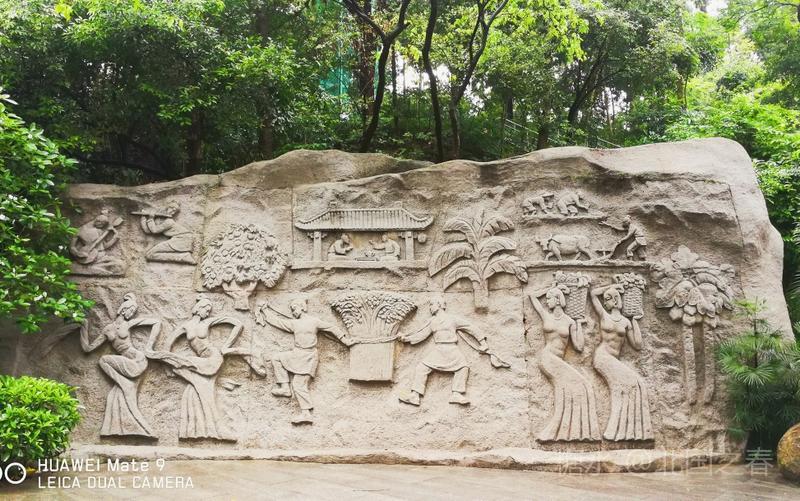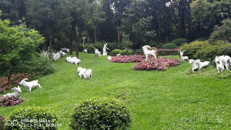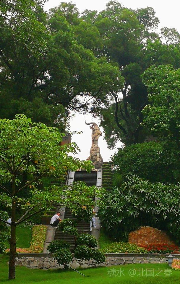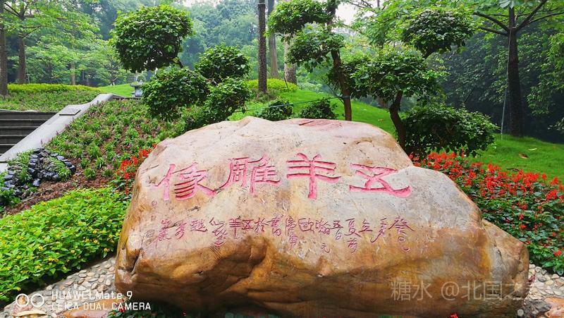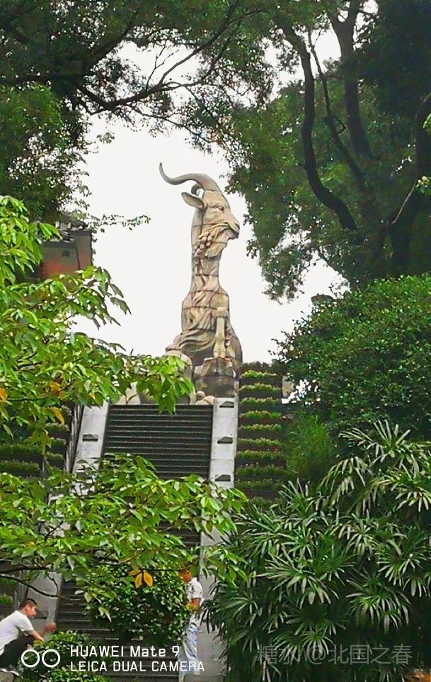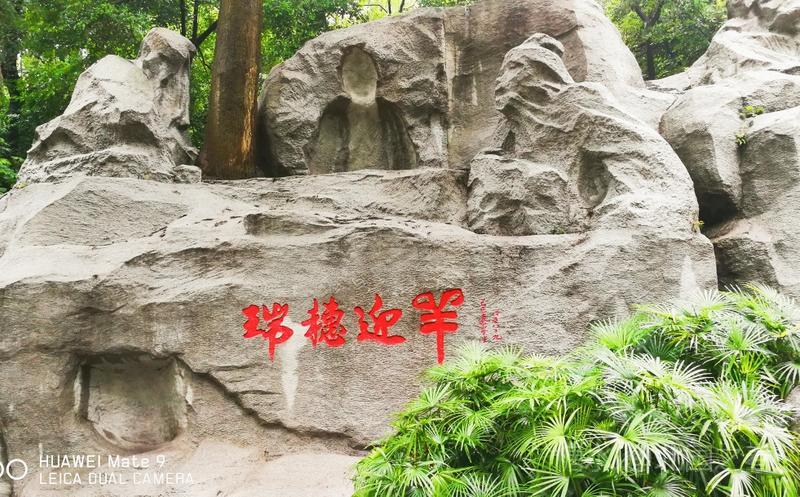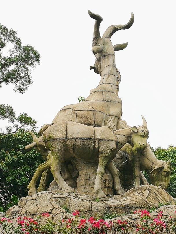 五羊石像——屹立在公园的木壳岗上,是广州市重点保护文物,它建于1959年,由尹积昌、陈本宗、孔丘传3位雕塑家创作。整座石像用130块花岗石雕刻而成,高10余米,体积为53立方米,这座雕塑,被视为羊城的标志。