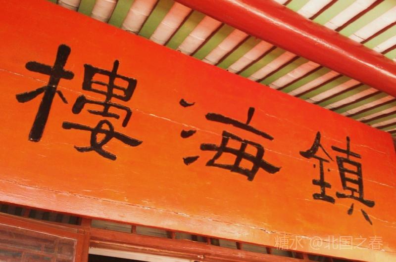 《鹧鸪天 • 镇海楼》 雄居南疆镇南海 百世千秋传万代 红砂岩条石砌成 绿琉璃瓦顶覆盖 墙向内,檐朝外 石湾彩釉鳌鱼带 岭南第一胜览景 当年雄风今犹在