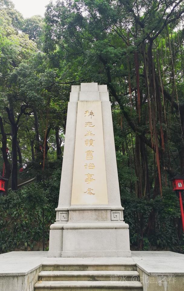 孙先生读书治事处纪念碑位于越秀山南面百步梯的半山坡上,即孙中山于1921年在广州就任非常大总统时,曾和宋庆龄居住过的“粤秀楼”遗址。1922年6月26日,陈炯明背叛孙中山,发动武装叛乱,孙先生和宋庆龄夫人是从这里脱险的。