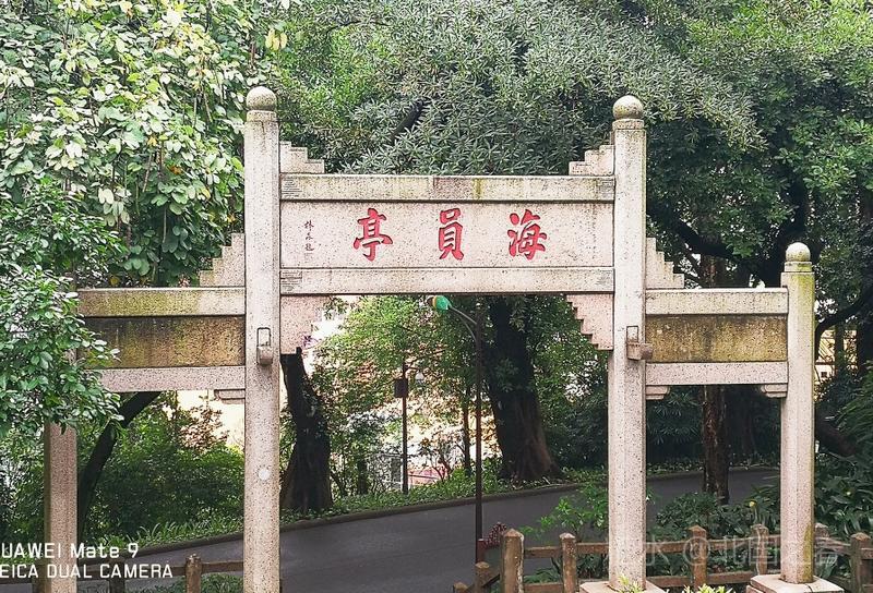 海员亭,在镇海楼东侧,是纪念香港海员大罢工而建。地面绘着蓝底黑锚白字的中华海员工业联合总会会徽,坊额镌刻“海员亭”3个楷书大字。香港海员大罢工,是中国工人阶级反帝斗争的第一次胜利,成为中国工人运动第一次高潮的起点。