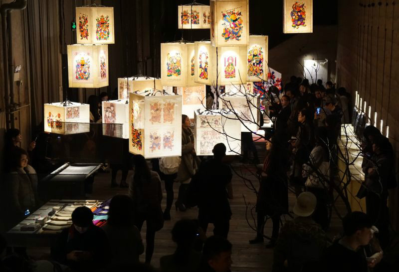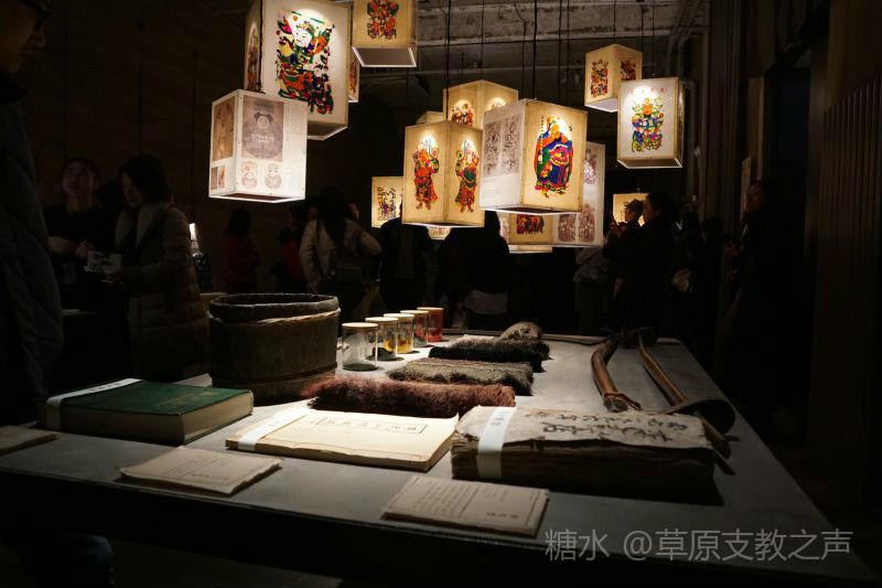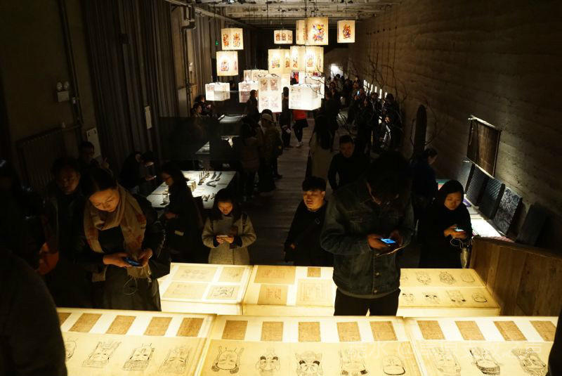 层级而上,通体发光的展柜,把年画的发肤纤维,血脉骨髓都展现的淋漓尽致,我看到了马可的智慧和独具匠心。