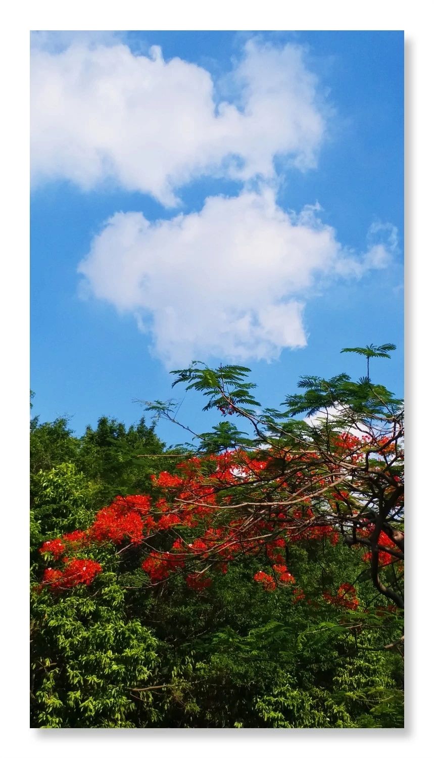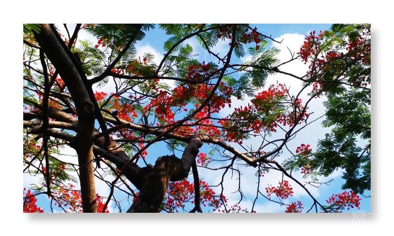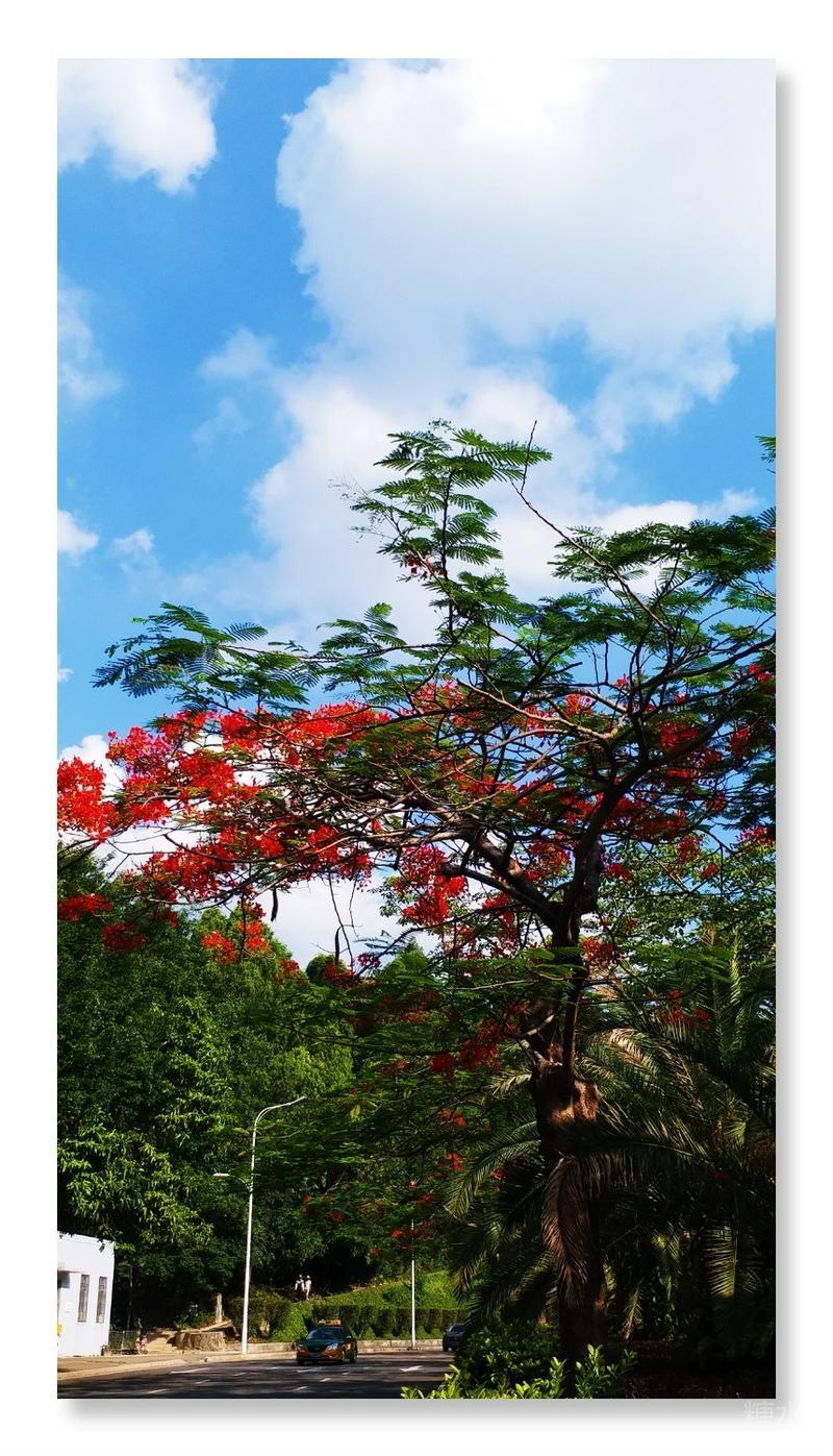 红花楹也叫凤凰树,花开季节红一片,炫耀!美!心仪很久,终因树高庞大而无法近摄。但机遇来临,忽见一片随手可摘的凤凰树丛,急拍,了却心愿。