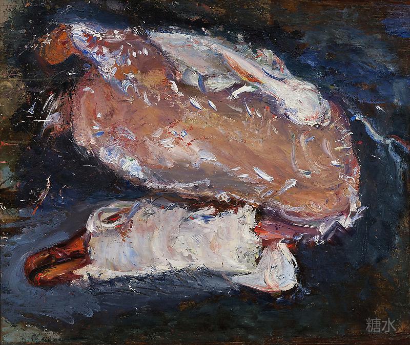 柴姆·苏丁,《牛肉》,c.1925 1925年,柴姆·苏丁(Chaim Soutine)画下作品《牛肉》(Carcass of Beef)——这是他在一年半的时间里,画下的10幅牛肉作品的一幅。画面中,橙红色的牛肉和蓝色衬布给人以强烈的视觉冲击:画家以“生”动的方式表现了牛的死亡,它原本平凡的“牺牲”由此显得壮烈。