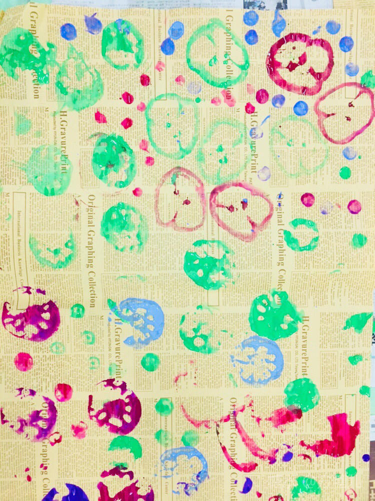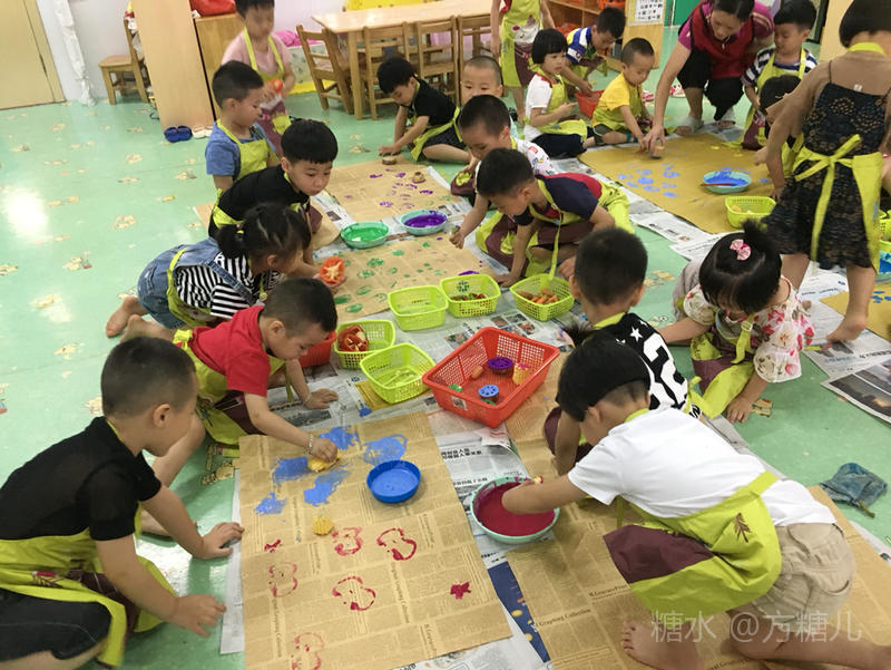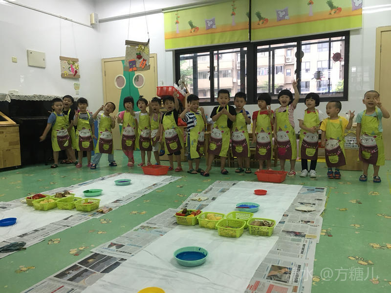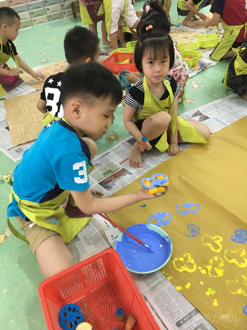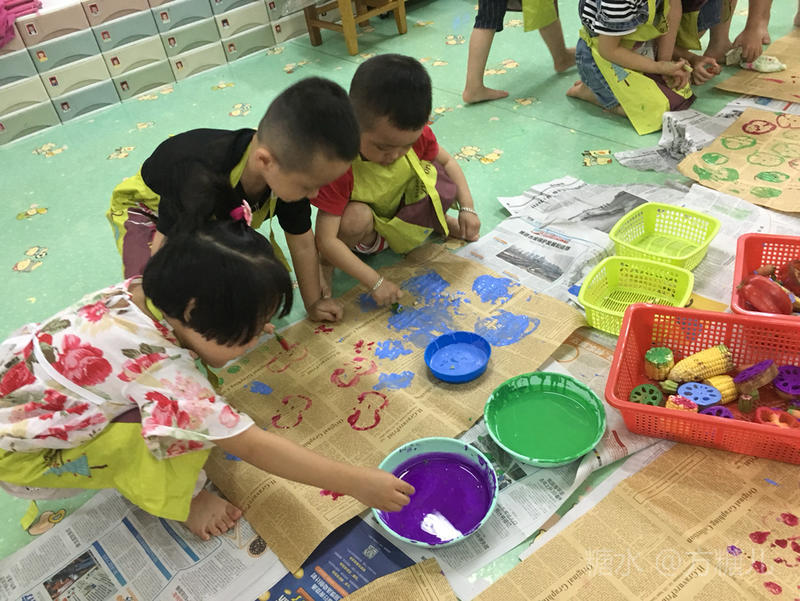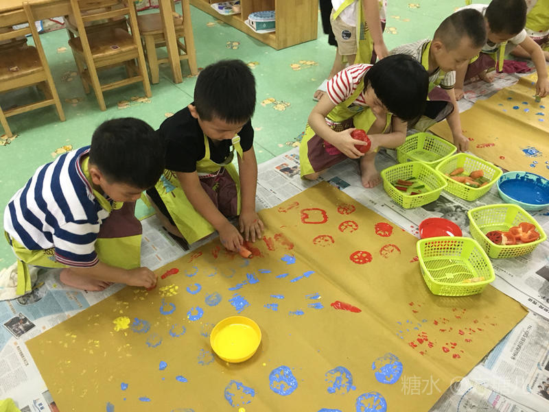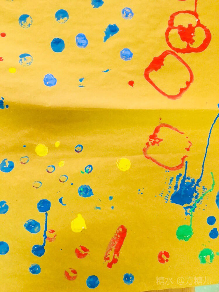 小妙招:宝贝在家里也可以轻松玩拓印,入夏很多蔬菜水果容易坏不妨把坏的部分去掉,留下小部分好的让宝贝们来尽情的玩拓印画。白菜根、芹菜茎、小土豆、苹果、桔子等等,都能轻松创作自己的各种作品哦!