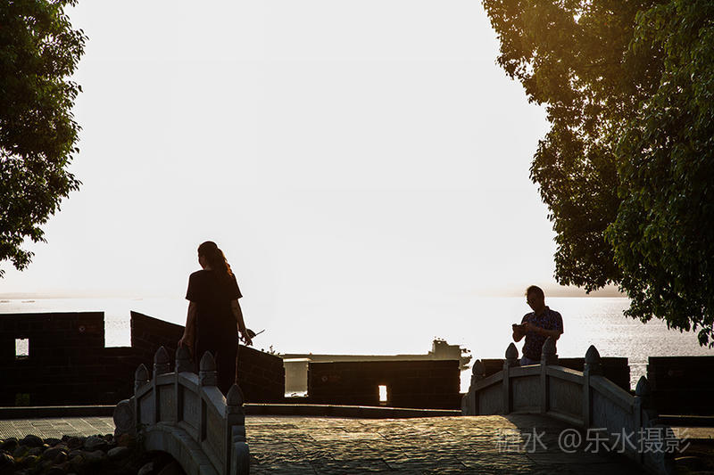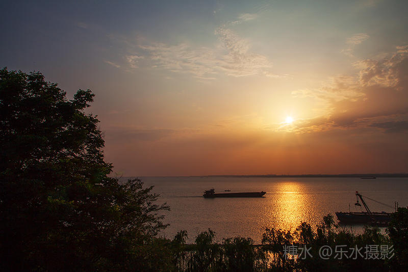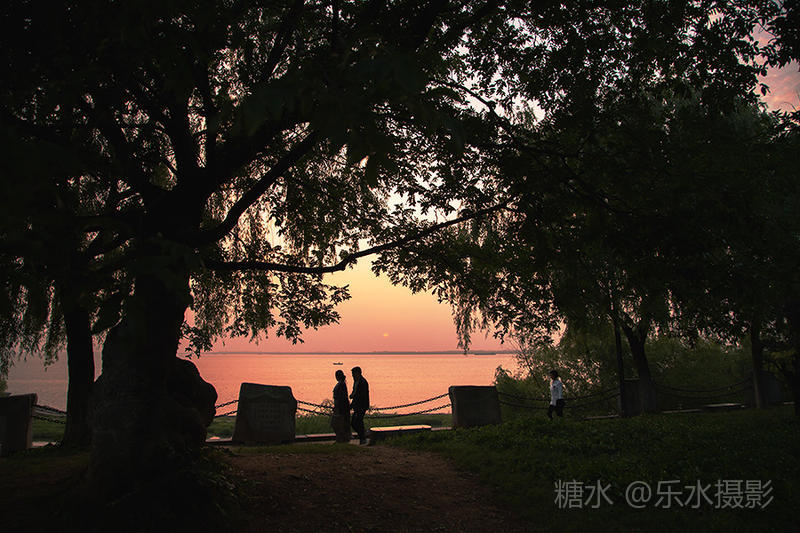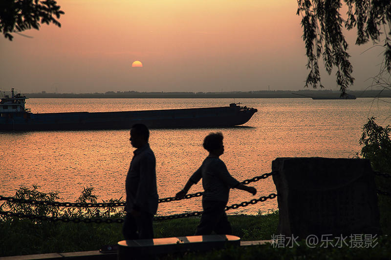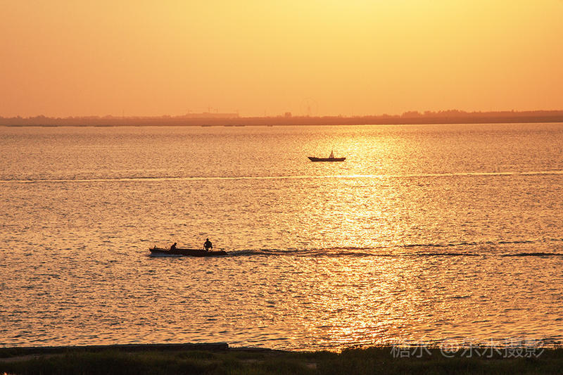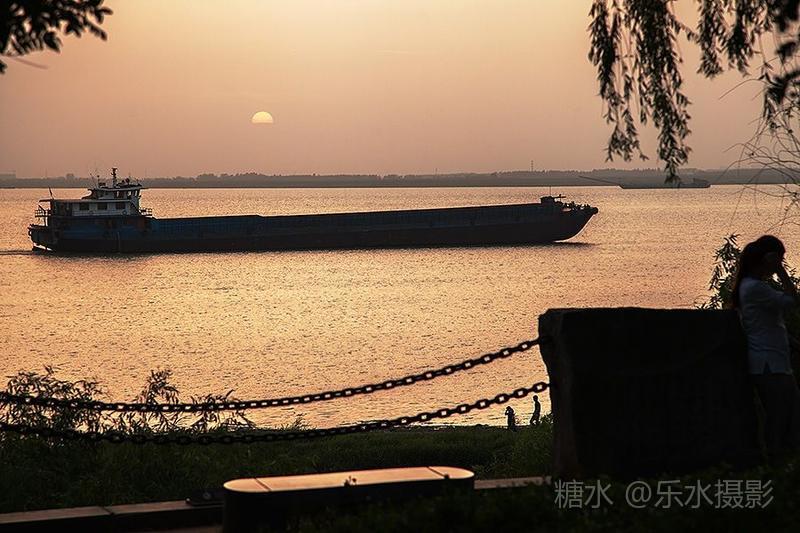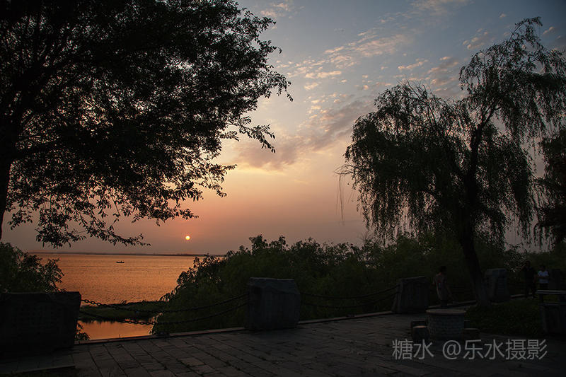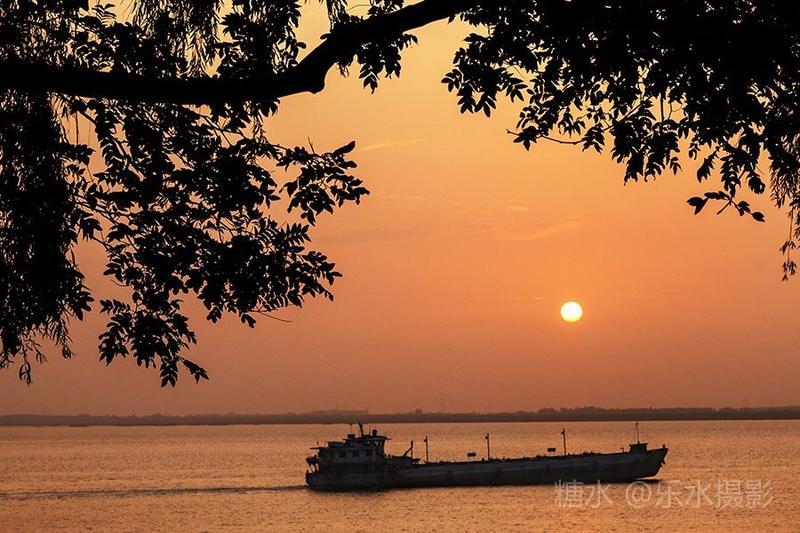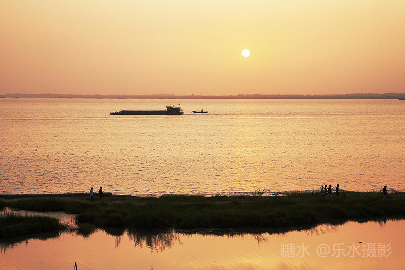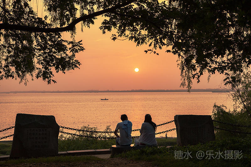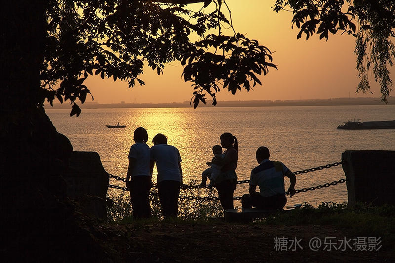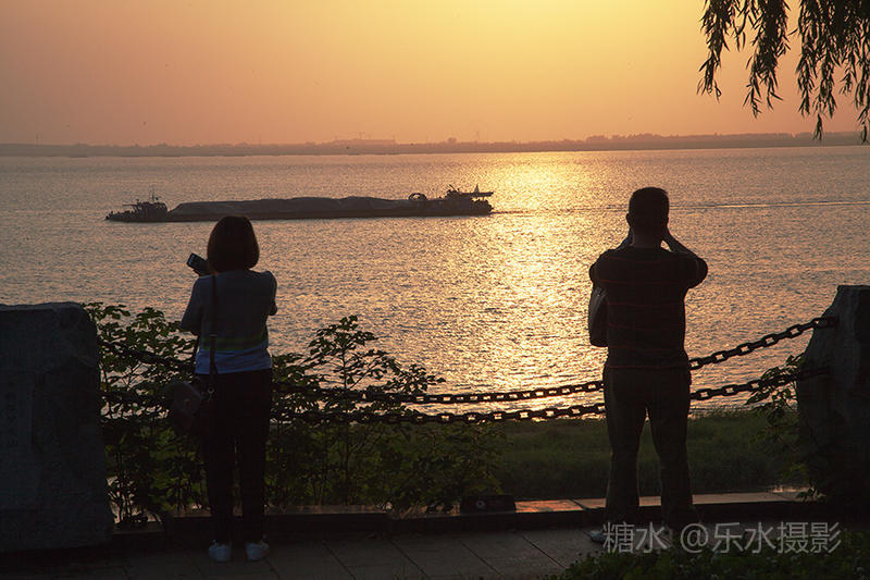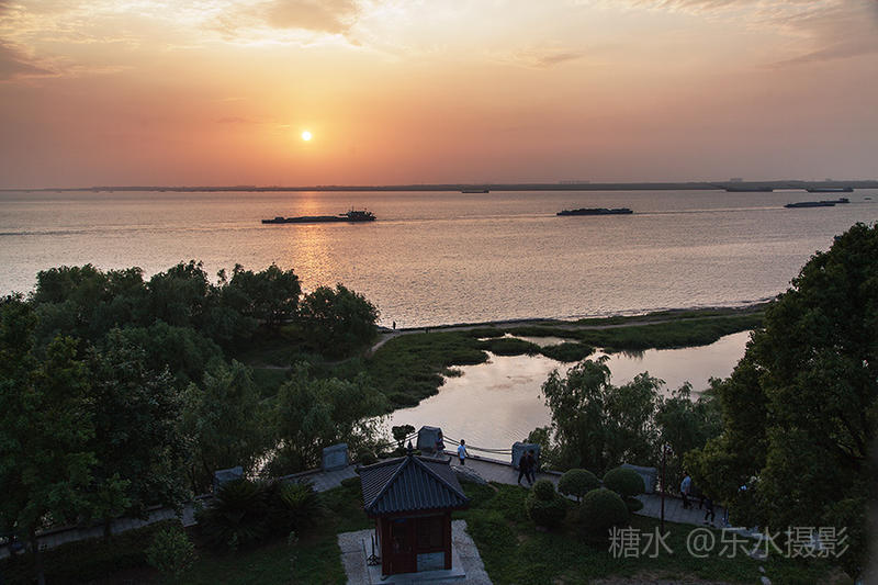 夕阳西下,洞庭湖浮光跃金,游客流连忘返。