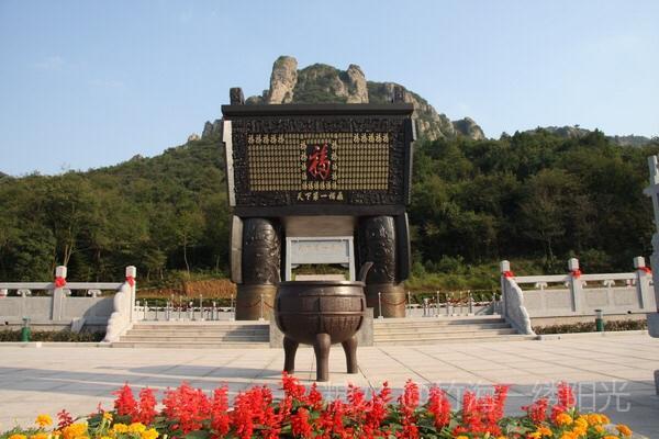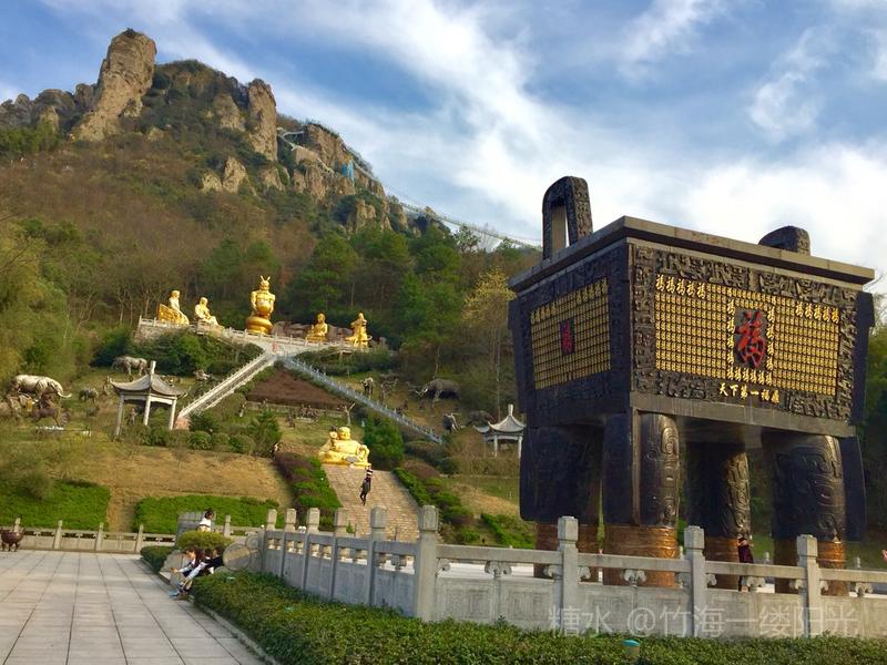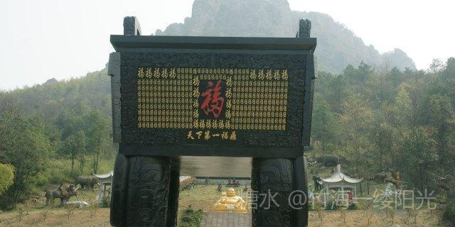 马仁奇峰景区 天下第一福鼎 此乃国内最大的鼎 福鼎高九点九米 重九十九吨 鼎身共镶嵌九百九十九个福字 福字引用的是康熙皇帝为母祝寿时的御笔 这个号称第一的福字意味深长 包含了多子、多才、多寿、多田、多福五种含义。