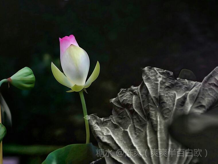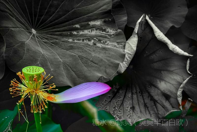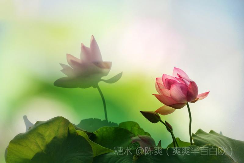 多重曝光先拍空瓶再拍摄荷花和晕染的色彩。