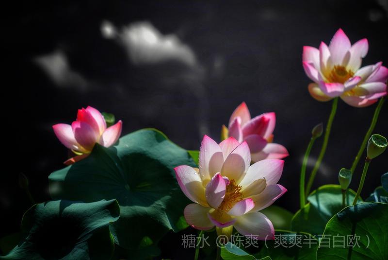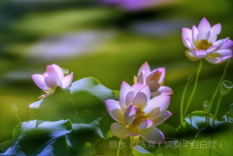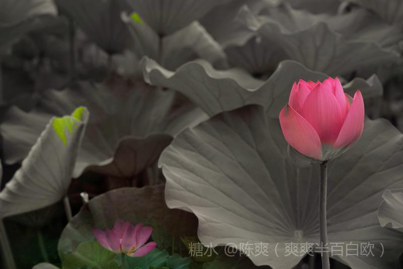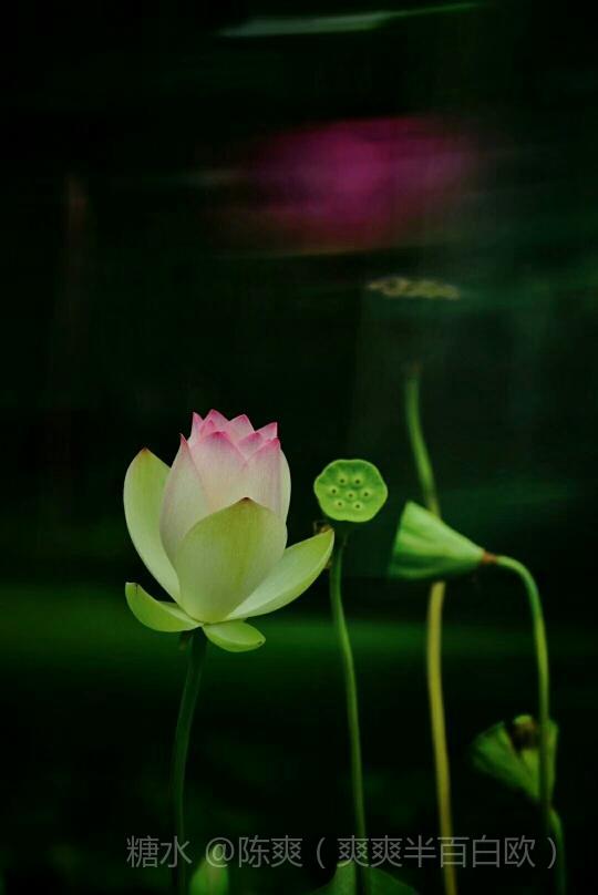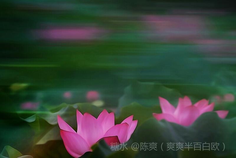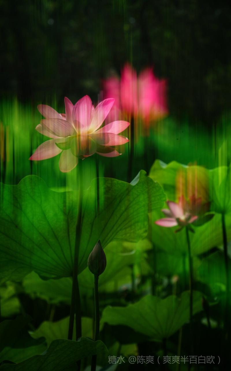 其中一曝清晰外,其它曝光可以慢速晃动,动静结合。产生风儿吹来荷花摇动的感觉。