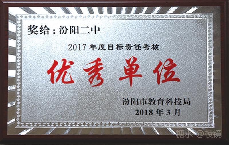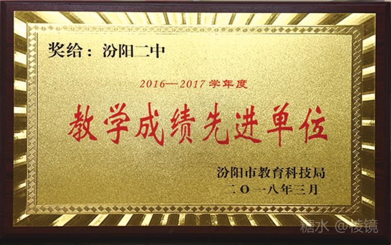 1、汾阳二中2017年6月被省教育厅确定为“山西高中教育改革试点学校”(全吕梁市仅三所)。2018年5月25日,我校作为全省学生生涯规划教育改革试点学校中唯一的代表向省教育厅做了试点工作专题汇报,受到高度肯定,已成为生涯规划领域的先进学校。省厅准备在汾阳二中召开全省试点工作推进会。 2、2017年7月,汾阳二中被中共汾阳市委表彰为先进基层党组织。 3、2018年3月,学校被吕梁市教育局授予全汾阳唯一的平安和谐校园建设先进单位。 4、2018年3月,学校被汾阳市教科局授予2017年度目标责任考核优秀单位。 5、2018年4月,学校被汾阳市教科局授予2017年度教学成绩先进单位。