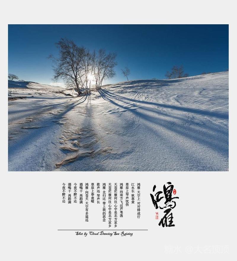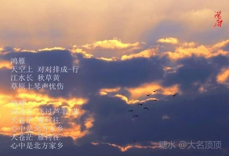 每每听到这首《鸿雁》总有一种情怀沉积在胸,是思念家乡的故土,是思念那些陪伴自己成长的人和岁月,更是珍惜手中牵着的那个人。酒喝干,再斟满,饮下的是年华,沉淀的是永不辜负的真情。