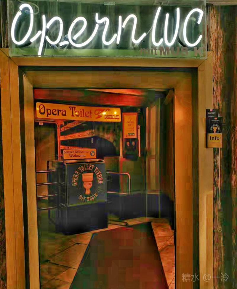 维也纳国家歌剧院是世界三大歌剧院之一,其近旁地下通道里有“歌剧院洗手间”,入内需付费0.9欧元。这里的厕所间布置成歌剧院包厢的模样,里面不停循环播放小施特劳斯创作的《蓝色多瑙河》圆舞曲,地上地下歌剧院彼此呼应,实在有趣又精采!