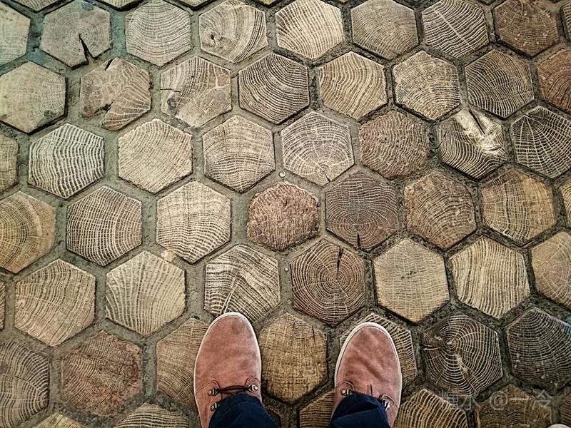 宫中底楼六边形实木桩拼成的地板。按批入宫内参观每人均配有中文解说器,但宫内禁止拍摄影像资料,所以缺少内宫部分的照片。