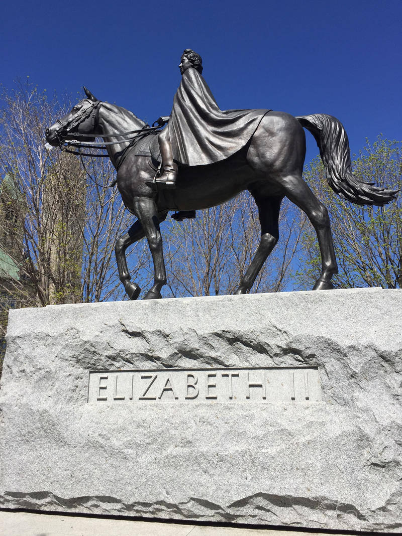 国会山最高点座落着维多利亚女王纪念碑,还有骑在战马上英姿飒爽的女王伊丽莎白雕像,四周分别是加拿大四位联邦之父以及加拿大前任总理雕像。
