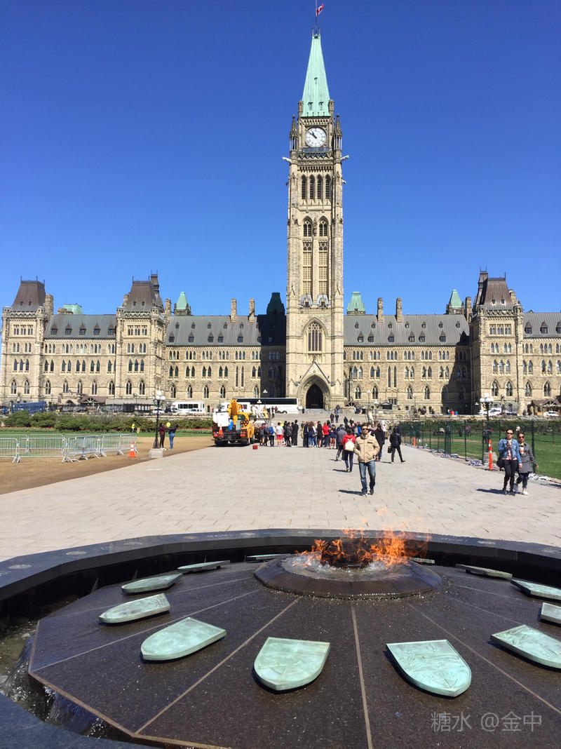 国会大厦是渥太华著名的建筑群,中央有陈设着加拿大各省标志的大厅,塔内有战争纪念碑。