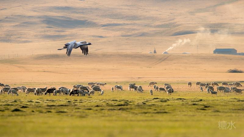 牧羊、炊烟和蓑羽鹤构成了草原最美丽的画面。