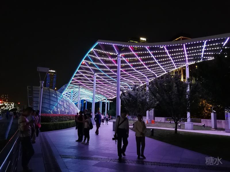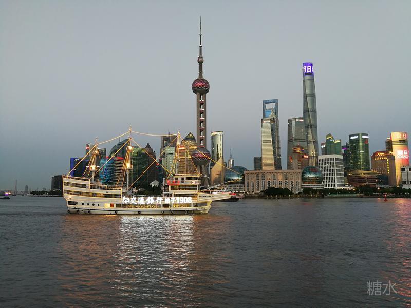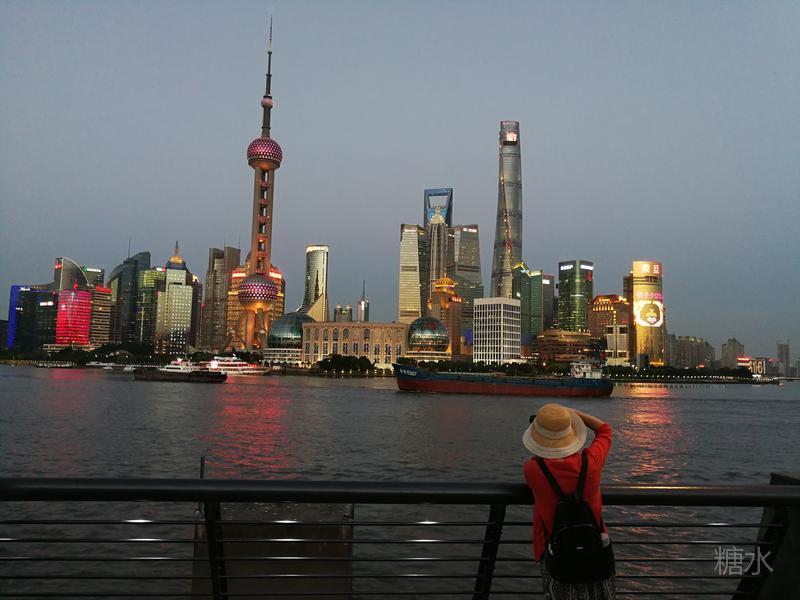 看完外滩的过去,在观景平台上漫步,你稍稍休息一下,将目光移至江对岸的浦东,这里的建筑都是在浦东大开发后雨后春笋般密密匝匝拔地而起的,东方明珠塔在陆家嘴的尖角上,变换着五彩光芒;沿江的每一栋高楼都是一座巨大的广告牌,构成城市天际线的上海中心、金茂大厦和环球金融中心成三角鼎立之势,与浦西的老建筑相比这里是上海廿一世纪的新坐标,想象一下,仅一座上海中心的可用面积就相当于从北京路到延安路沿街所有老建筑的可用面积之和。黄浦江上游船来来往往,浦江两岸火树银花不夜天,观景平台凉风习习人欲醉---无疑这样的滨江景色是世界级的。