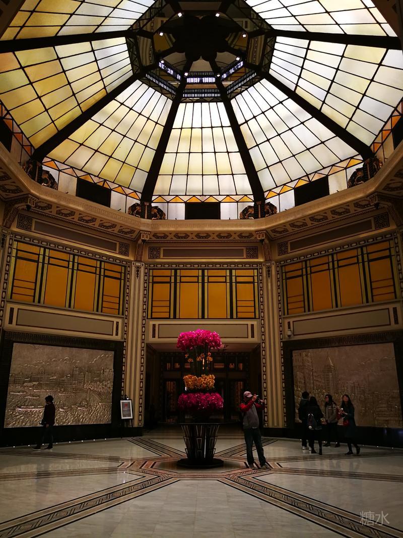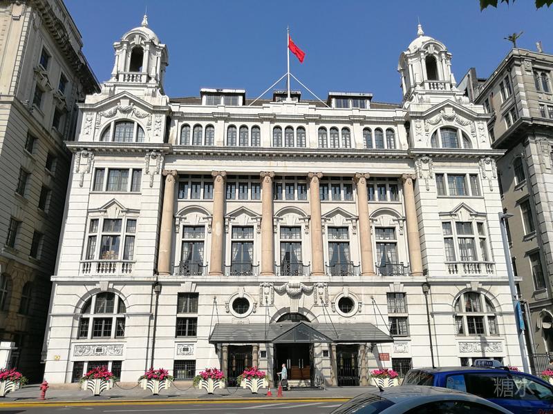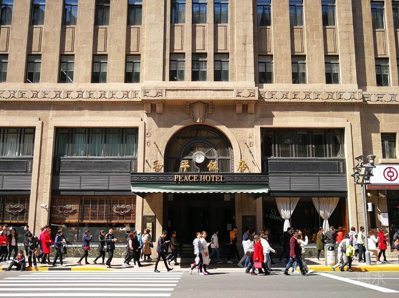 南京路口的和平饭店原名华懋饭店,1929年由犹太人在上海三大家族之一的沙逊出资建造,楼高77米共12层的大楼为哥特式建筑,外墙为花岗岩、大堂用乳白色意大利大理石铺成,配以古铜镂花吊灯,大楼最高处的绿色铜护套屋顶成为其一大特色。极尽奢华典雅;无论在建成之初还是近百年后的今天都堪称杰作,配得上“远东第一楼”的美誉。