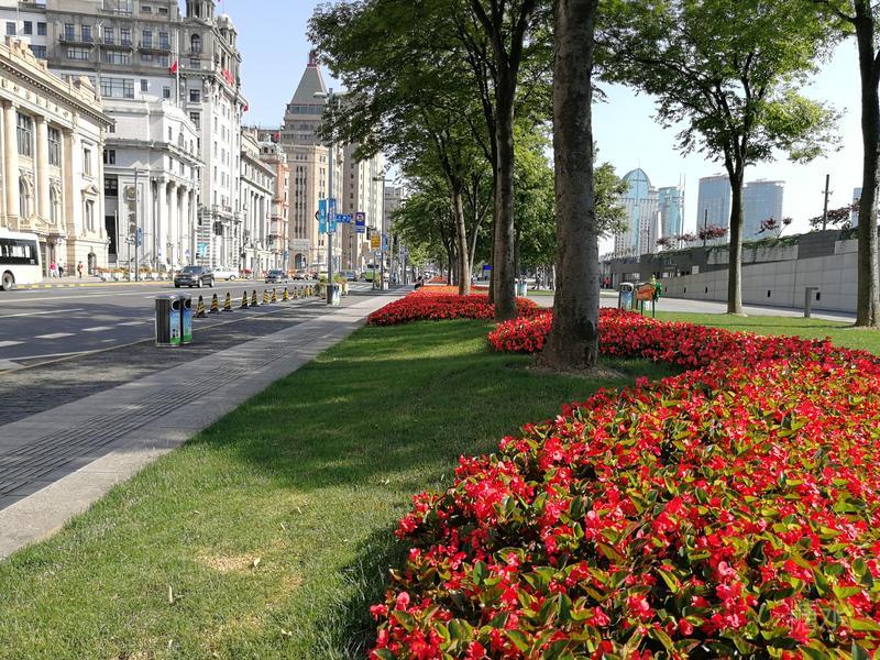 今天的外滩已换了容颜,防汛墙抬高了,上层就是宽阔的观景平台。仿旧的路灯、外挑的圆弧栏杆、大理石地面、间隔布置的花坛,以及来自全国各地、世界各地的游客、和沿途两岸的美景,构成了充满生机的亮丽的风景线。